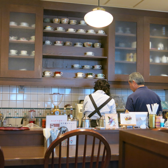 日本老齡化問題也很嚴重,跟歐洲有得一拼,但不同之處在於:歐洲的老人很多都過著悠閒自在的生活;日本的老人卻仍在辛勤勞動著。隨處可見老人開得花店、咖啡店、蔬果屋等。在我住的小區,就有一間我非常喜歡的咖啡廳,中古的設計,充滿了那種「日式洋菓子」氣息~~(看日漫的人應該了解我所指的)下面幾張圖就是我在這家咖啡店拍攝的(雖然店內沒有放「禁止寫真」的標誌,我還是偷偷地拍,總覺得太明目張膽也不好)這家咖啡店裏我最喜歡的一點是:老夫婦收藏了非常多很讚的咖啡杯!你甚至可以要求要用哪一款!