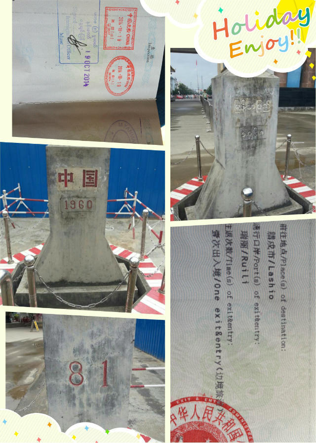 到瑞丽安排好住宿后不到四点,直接打车去姐告口岸,看看中缅边境,逛逛免税店。瑞丽市区有那种红色的出租车到姐告口岸,没有出租车顶灯,前挡风玻璃处贴着“瑞丽-姐告”,5元一位,很方便。在口岸直接联系了一家旅行社预订转天的缅甸一日游,每人480元,包含:边境证制证、境内外交通、午餐+晚餐,如果境外不购物的话就不再有其他费用了。旅行社接待人员首先问我们是不是公务员,是不是银行工作人员,如果是以上两类人员不能参团,因为以前曾发生过限制出境人员通过瑞丽前往缅甸,然后再逃往其它国家的事情,所以控制比较严格。
