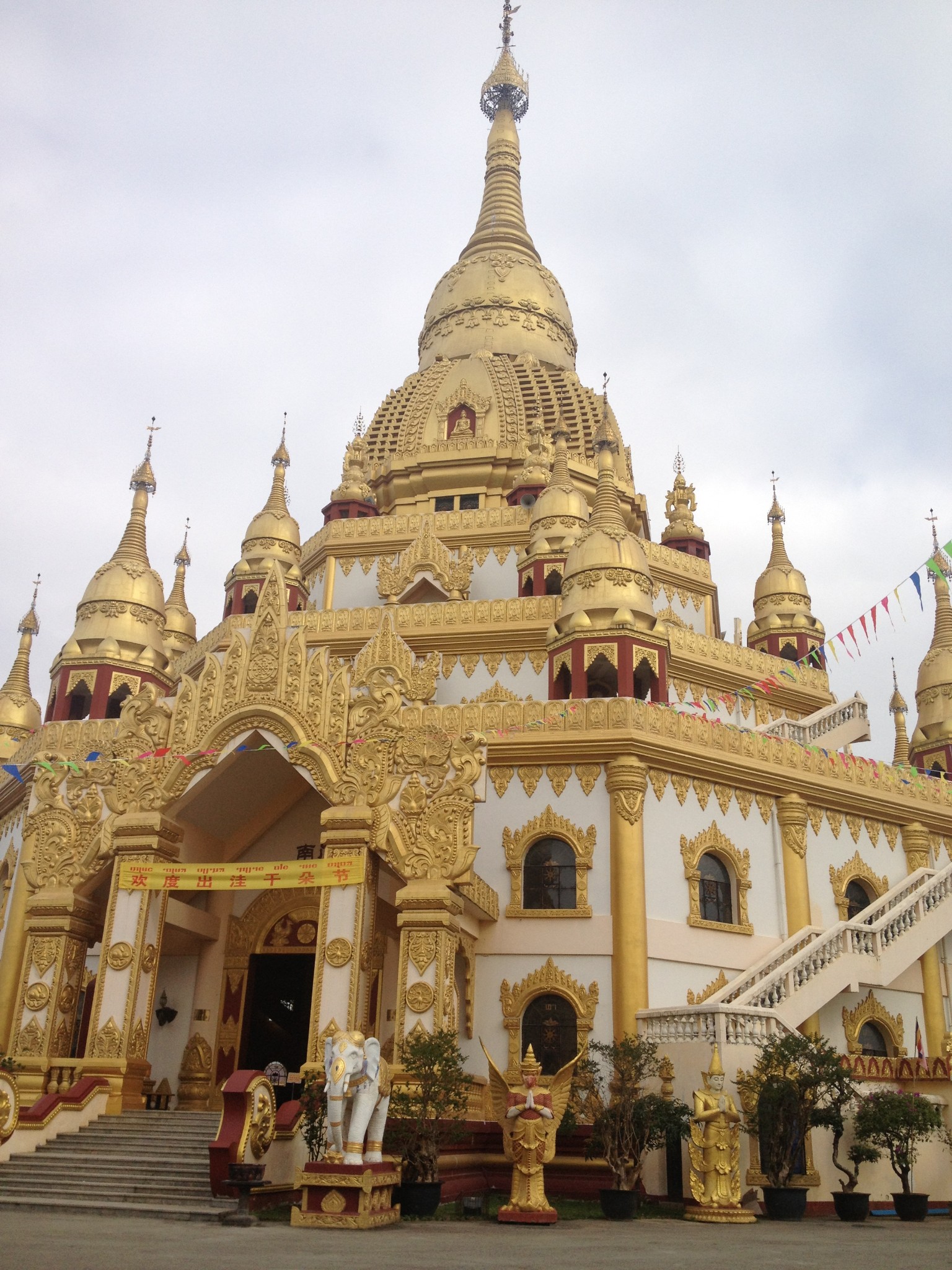 我们运气还不错,其他游客都上了大旅游车,我们三个没有座位了,另外安排了一辆丰田7人座商务车,我们因祸得福,得以享受1名司机、1名导游的专属VIP服务。和姐告毗邻的缅甸城市木姐实在太破败了,道路坑洼不平,房屋破旧,听导游讲,缅甸是民富国穷,老百姓富有的很多,但国家很穷,国家没钱修路,各项基础设施很差,人民都信奉佛教,有钱了就修寺庙或捐给寺庙。在木姐我们参观了一个佛教寺庙,从木姐乘车四十多分钟到南坎,在南坎参观了两个寺庙,返回途中在路边一个棚子里用了午餐,可能就是当地的农家乐餐馆,因为思想准备充分,味道反而比预料的要好。因为是三个人的小团,没浪费什么时间,返回木姐才两点多。如果是大团,返回木姐可能要四五点钟,然后再由中方导游接到瑞丽南亚风情园统一用晚餐。我们放弃了晚餐,直接从姐告口岸打车到重庆家贵富侨做个足疗,小睡歇息,旅行就是要劳逸结合,我们这个年龄不适合高强度的自虐式的驴行。晚餐我们选择到当地人气颇高的金螃蟹餐厅,点了好评率很高的香辣蟹,店员推荐的酸辣虾也很美味,这家的香辣蟹虽然品相不好,用了豆豉,所以黑乎乎的,但味道极好,很入味,螃蟹壳软,好嚼。这一餐吃得爽,还不贵,三个人166元。