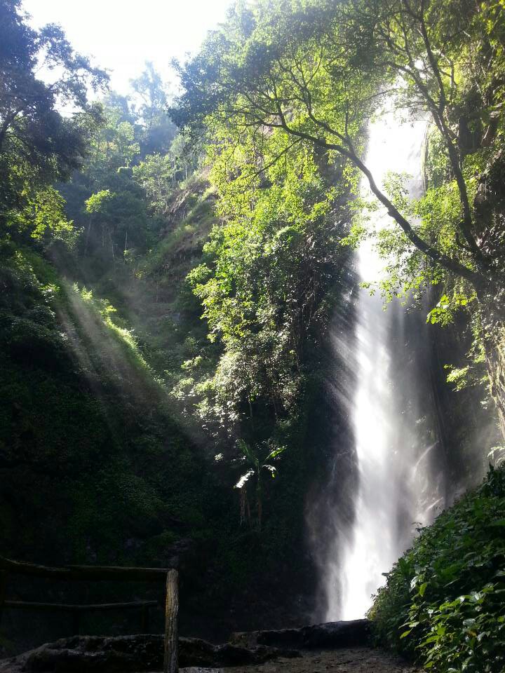 “莫里”位于芒市、瑞丽和陇川交接区的瑞丽市一侧,据说这里是中国负氧离子最高的一个天然森林氧吧。“莫里”是傣语,意为“美丽的瀑布”;古人称之为“扎朵”,是傣语地名,意即“盲管式峡谷”。走进莫里,上千种热带和亚热带植物遮天蔽日,漫步其中,神清气爽。传说佛祖释迦牟尼曾在林区内的温泉旁斋戒沐浴,并留下了一只硕大的脚印,俗称“佛脚印”,信徒兴建金塔护卫神迹。沿着山间小路一路前行,大约一个小时,眼前豁然开朗,重见天空,并见一条巨幅瀑布从60米高的绝壁上倾泻而下,水声轰鸣,这就是莫里瀑布。