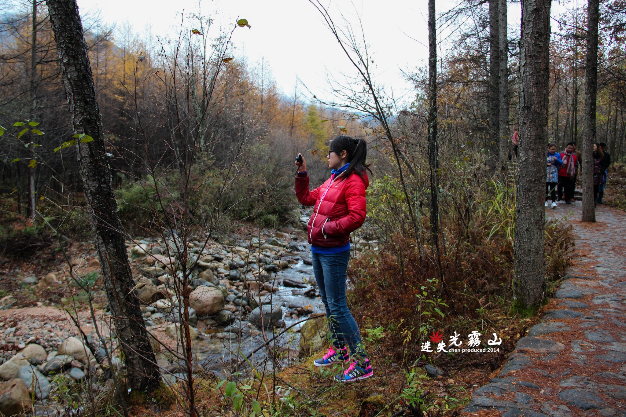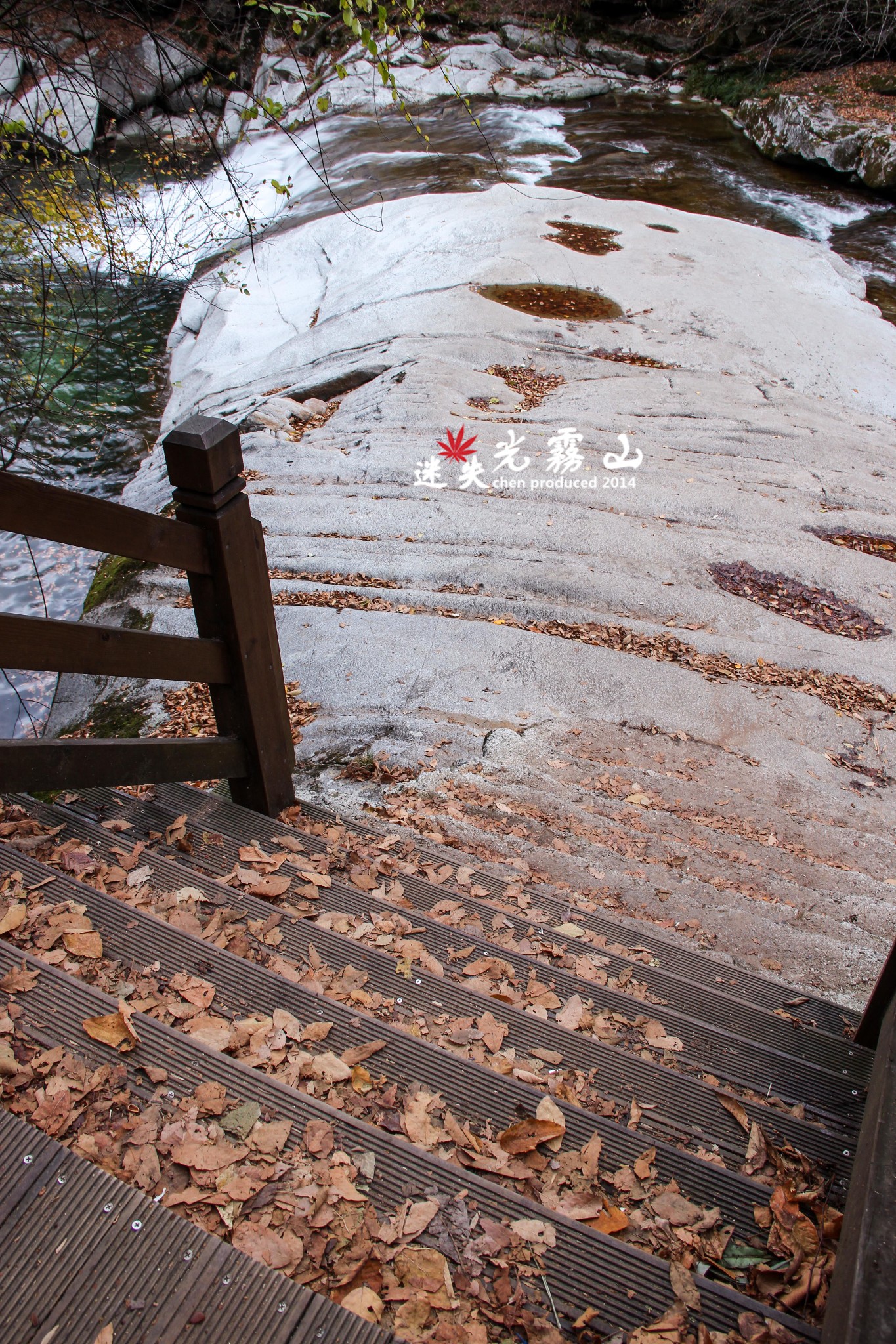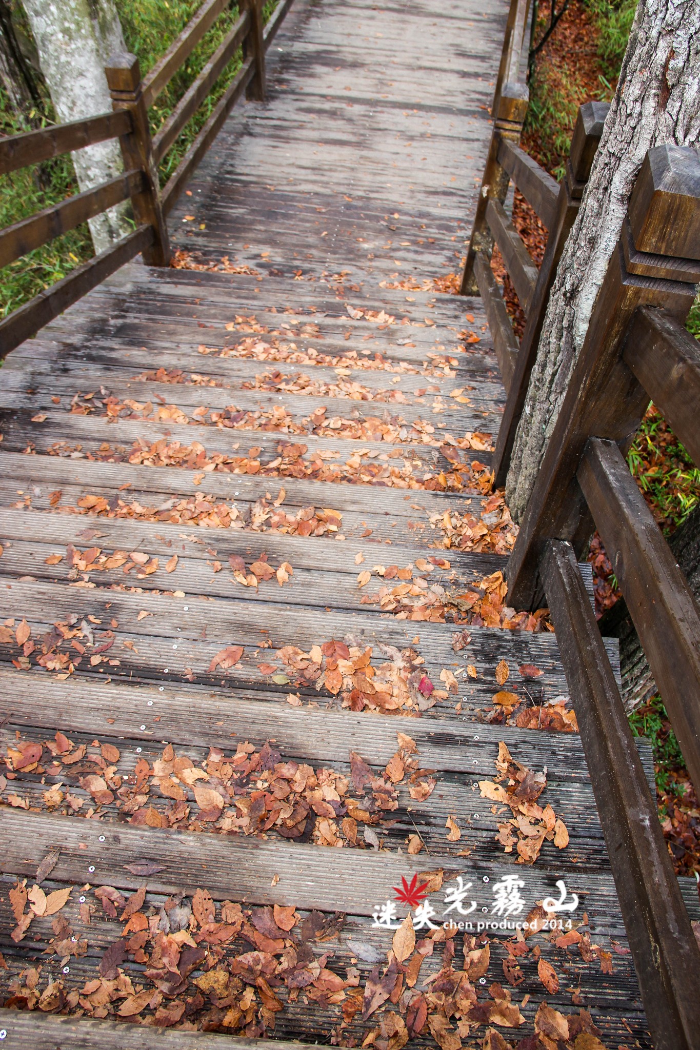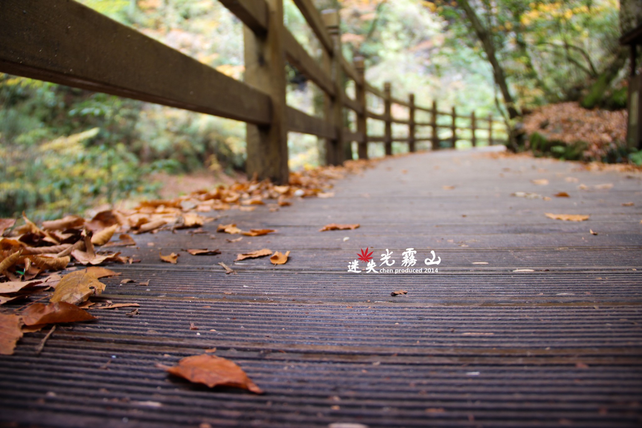 如果再早来一周,沟里到处飘落着红叶,木质栈道上也应该是被红叶洒满,那是何等的风景?