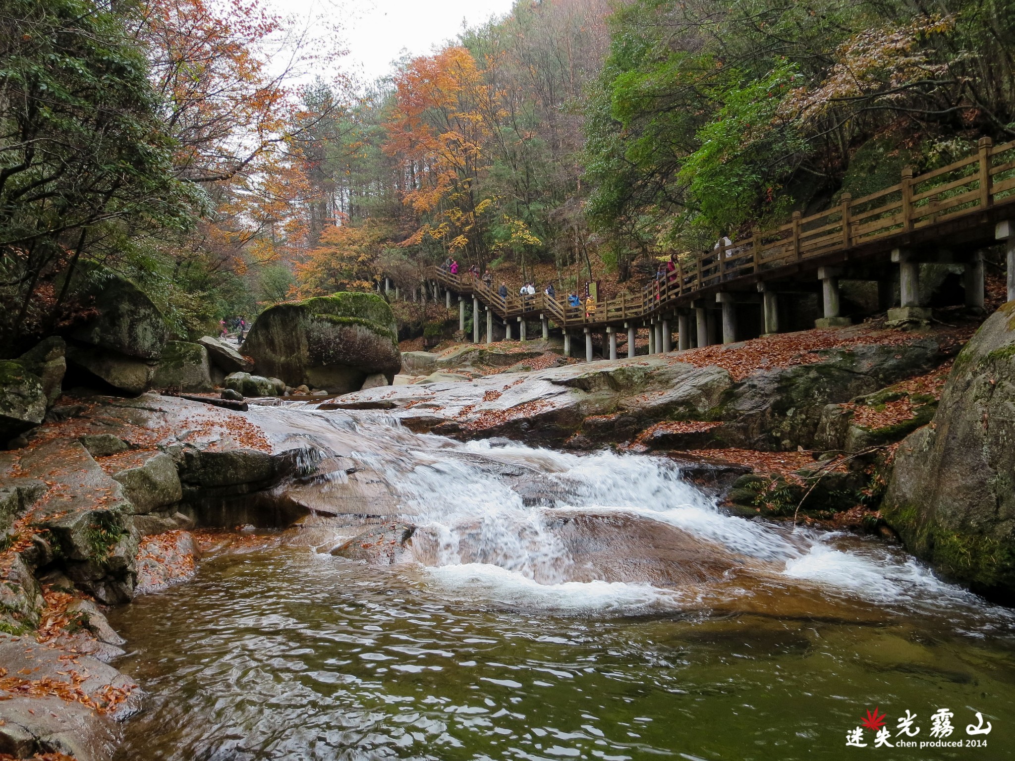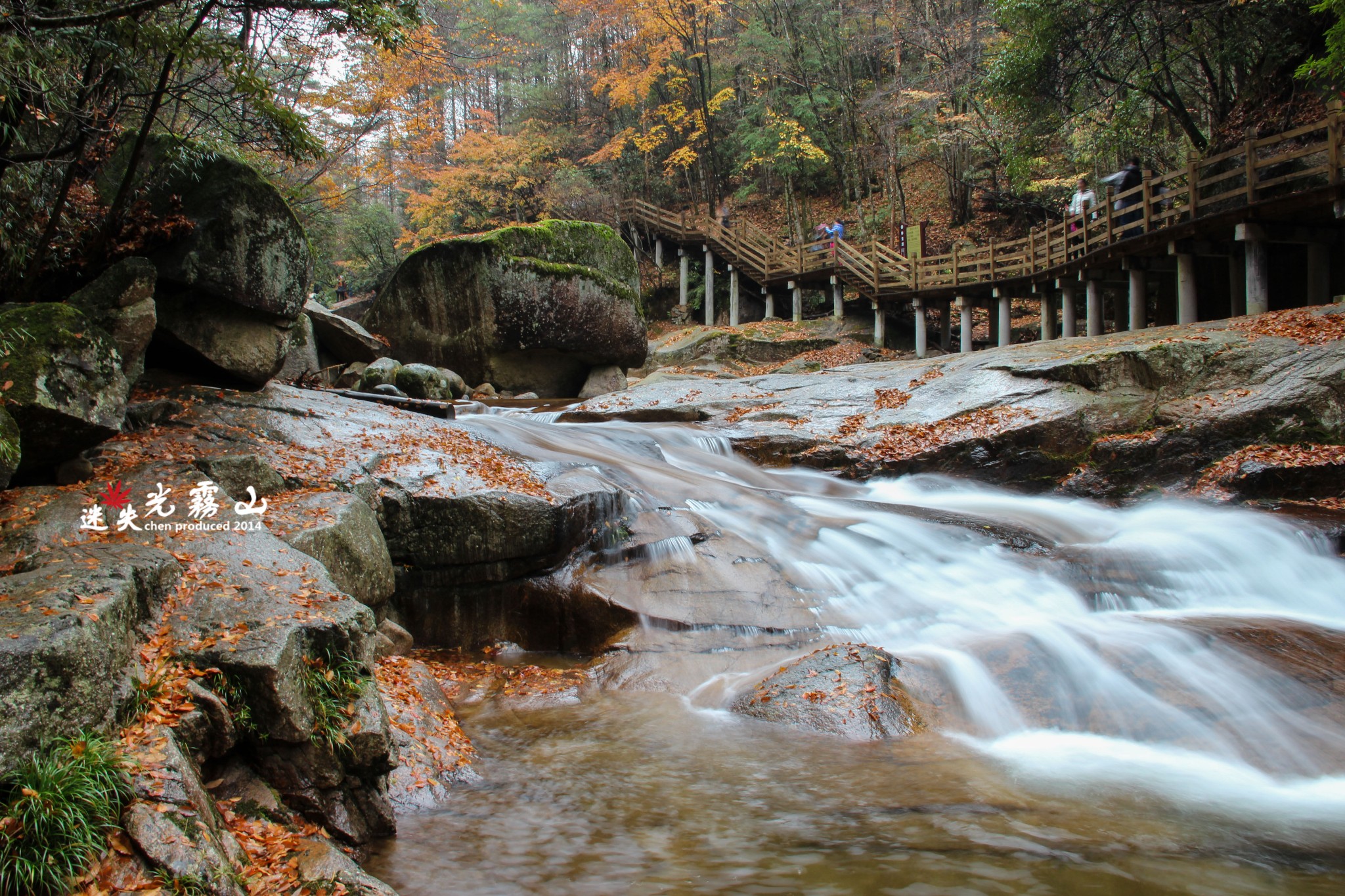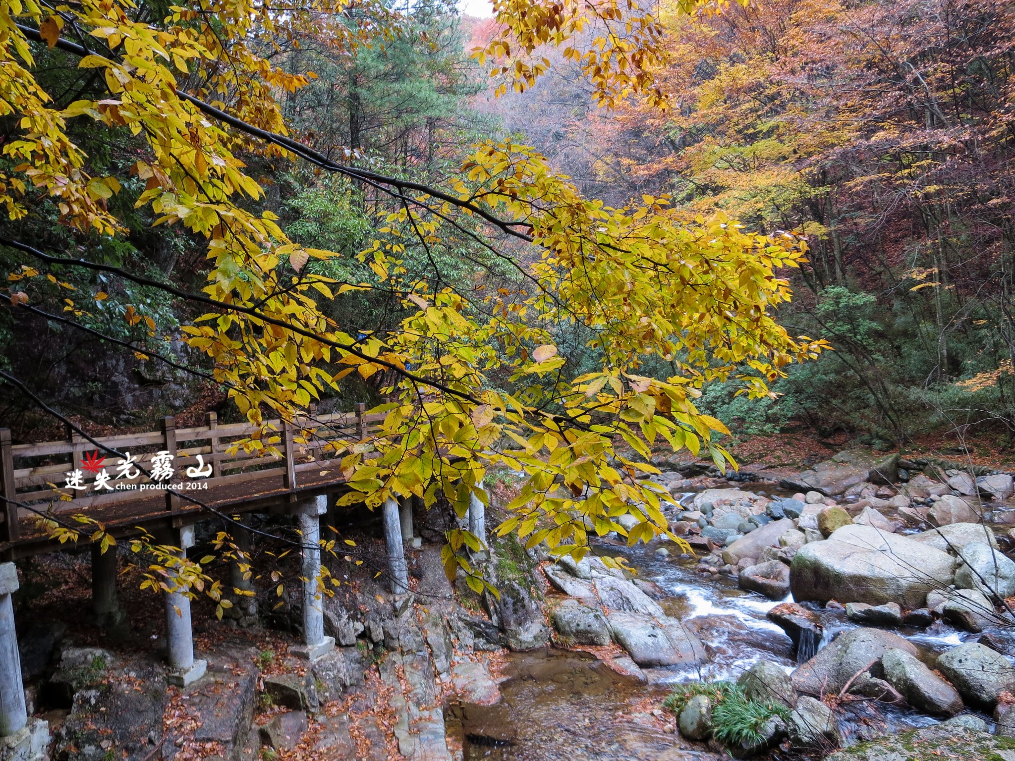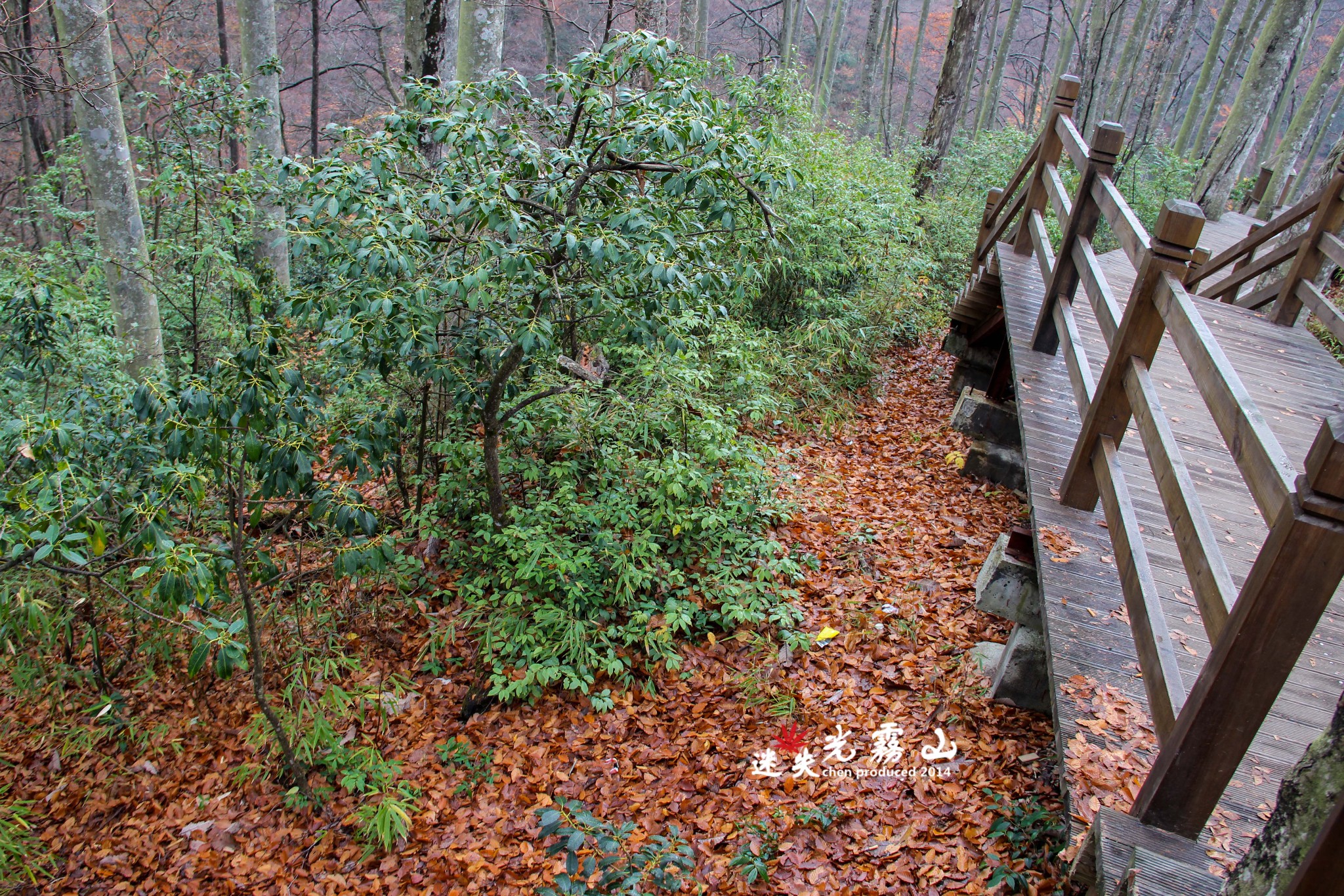 如果再早来一周,沟里到处飘落着红叶,木质栈道上也应该是被红叶洒满,那是何等的风景?
