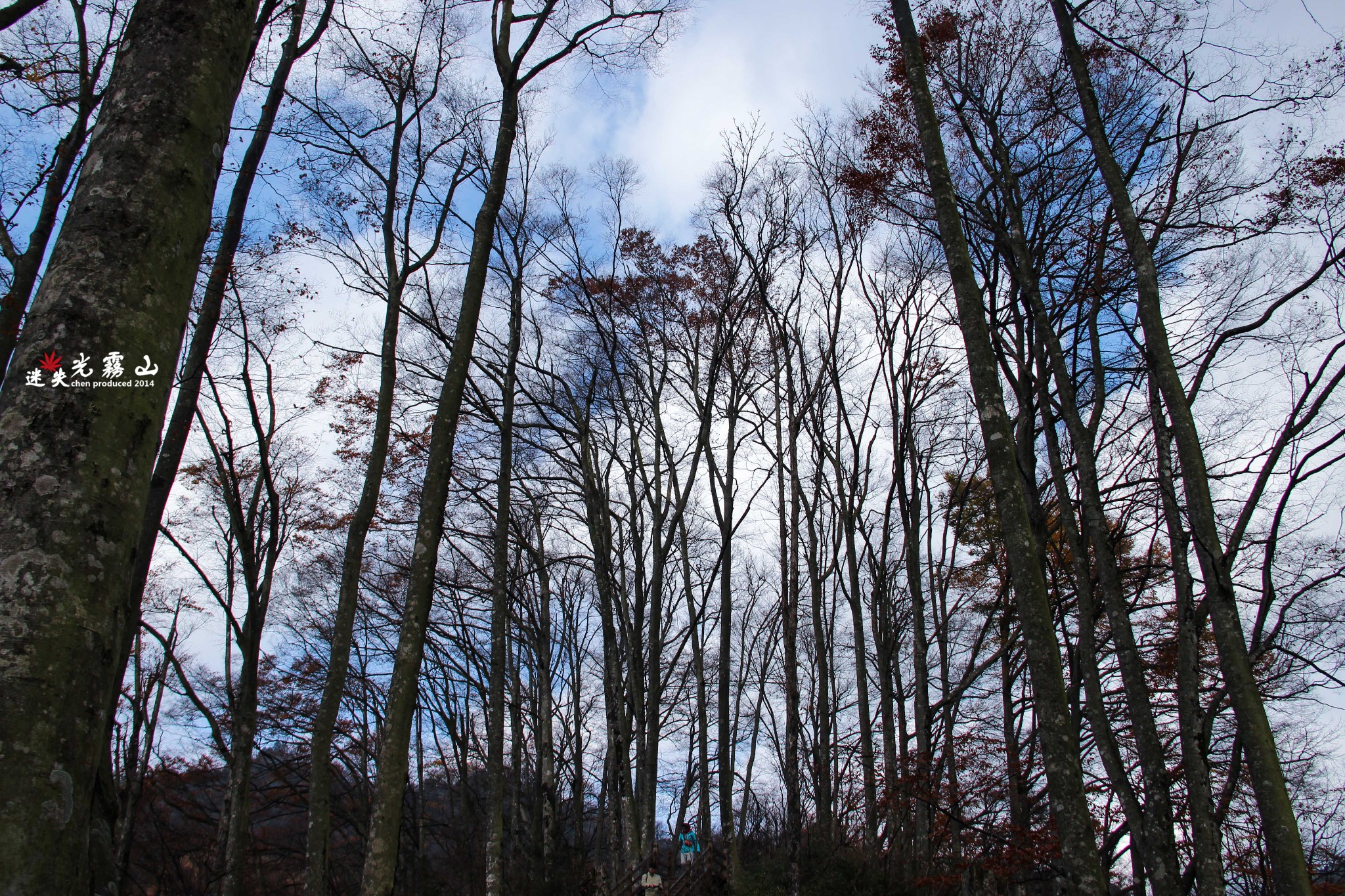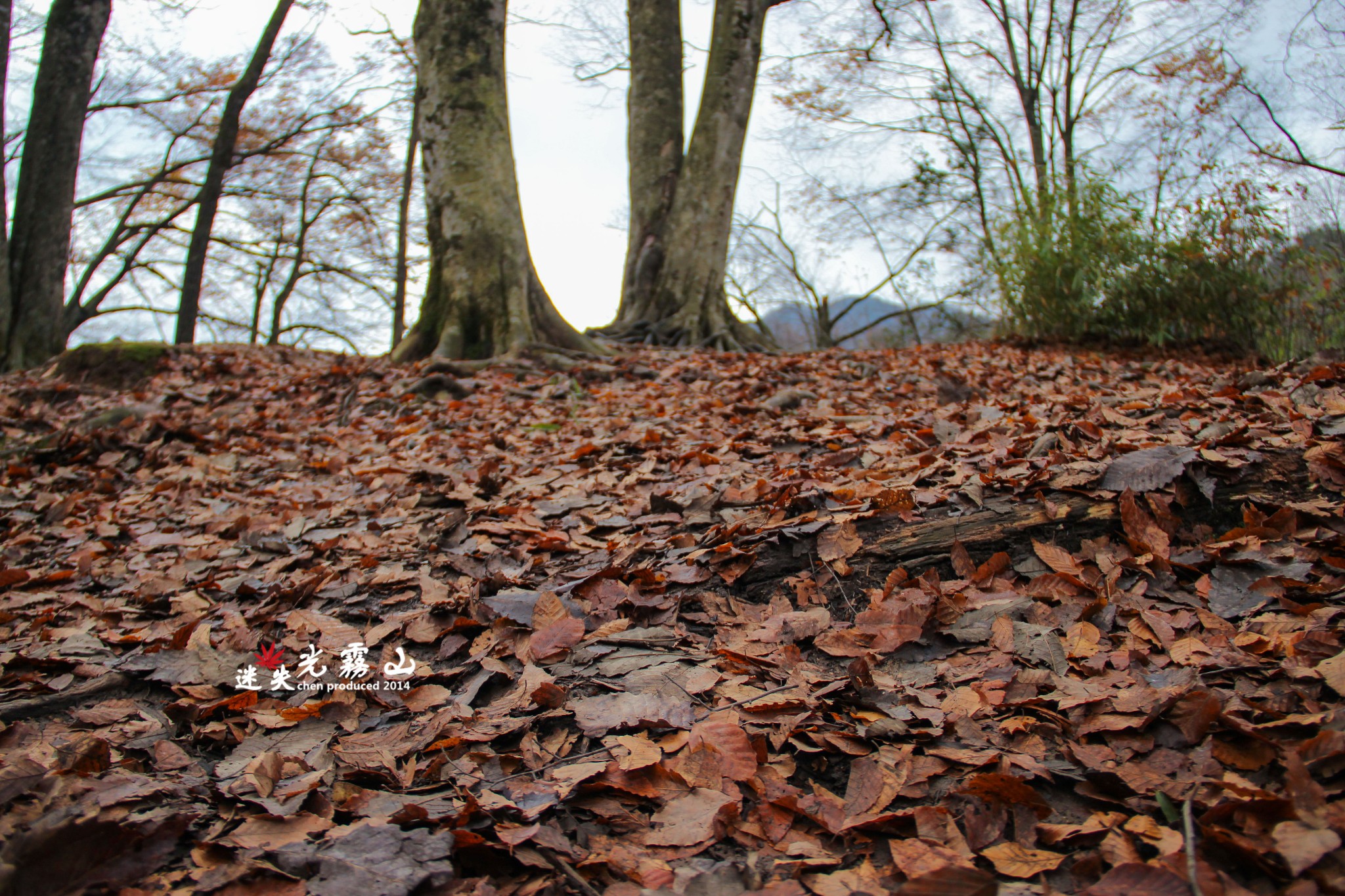 终究还是来晚了一步,想象中红叶满天的镜头真的只是停留在想象当中,我们来的时间是11月上旬,而且还是比较靠前的时间,光雾山(/poi/5431375.html)红叶节官方的截止时间是11月18日,可这里的红叶早已散落,而且几近落光。和这里的工作人员聊天才得知,每年看红叶的最佳时间是10月25日前后。因此上,真正来光雾山(/poi/5431375.html)看红叶的时间是非常短暂的。也许一两天之间,看到的景致就会是天壤之别!