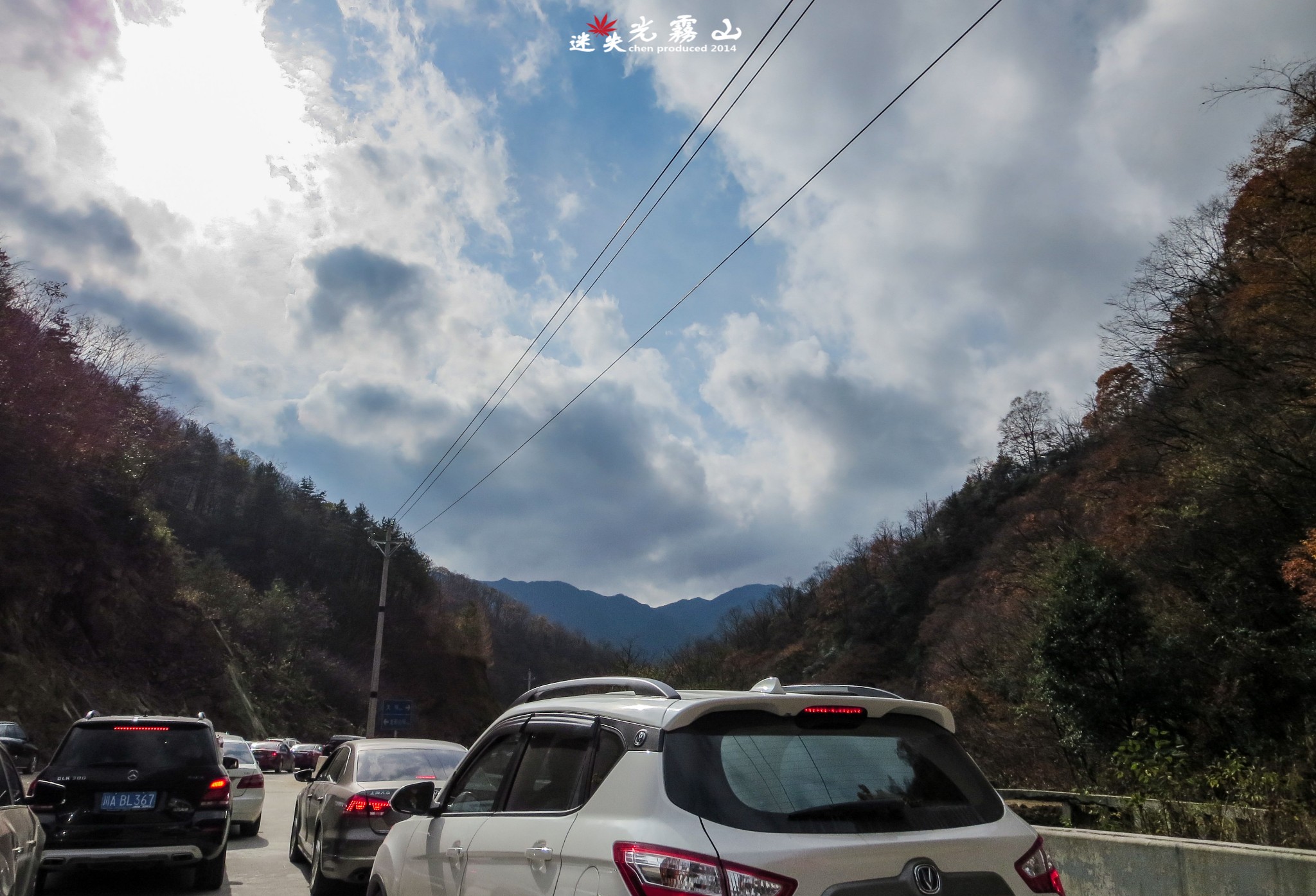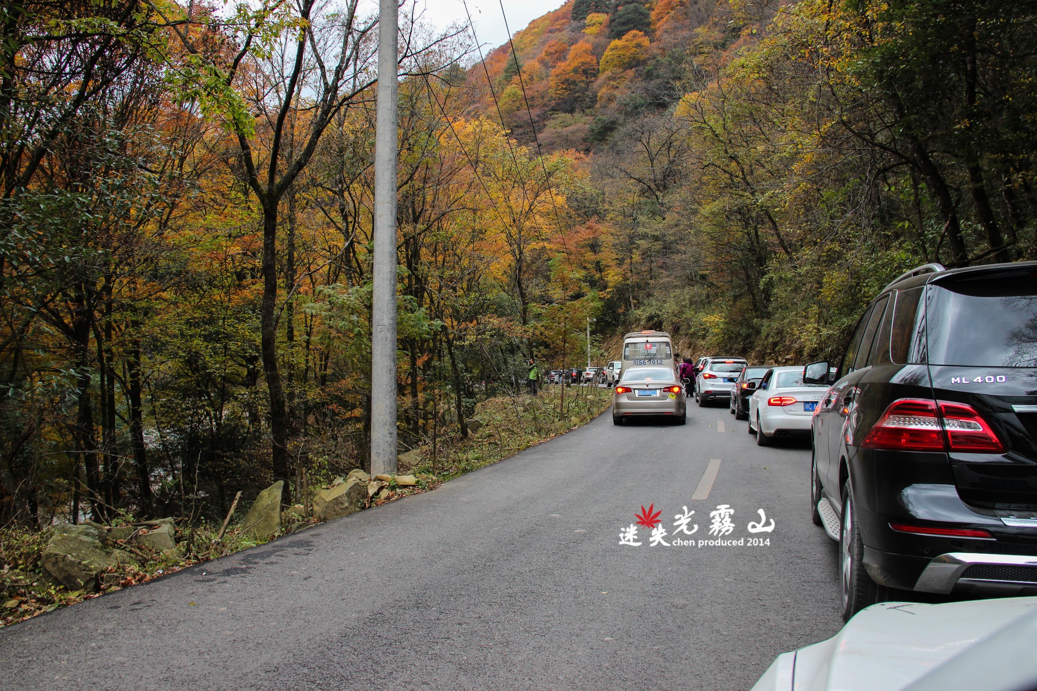 就这样在缓慢的车流中挪动了近3个小时,终于来到了光雾山(/poi/5431375.html)最有名的景点之一——天然画廊。由于停车位非常有限,车辆都是靠路边一侧停放,正常通行的道路被压缩的很窄,车辆到这里基本就开不动了。天然画廊在外面是看不见什么的,必须要走进去,所以也有很多车真的是走过路过还要错过,顺着山路就开下去了!我们的运气非常好,景区栈道门口处正好有一个车位,便一头扎了进去,总算是到了个景点了,这下红叶们总该露脸了吧!