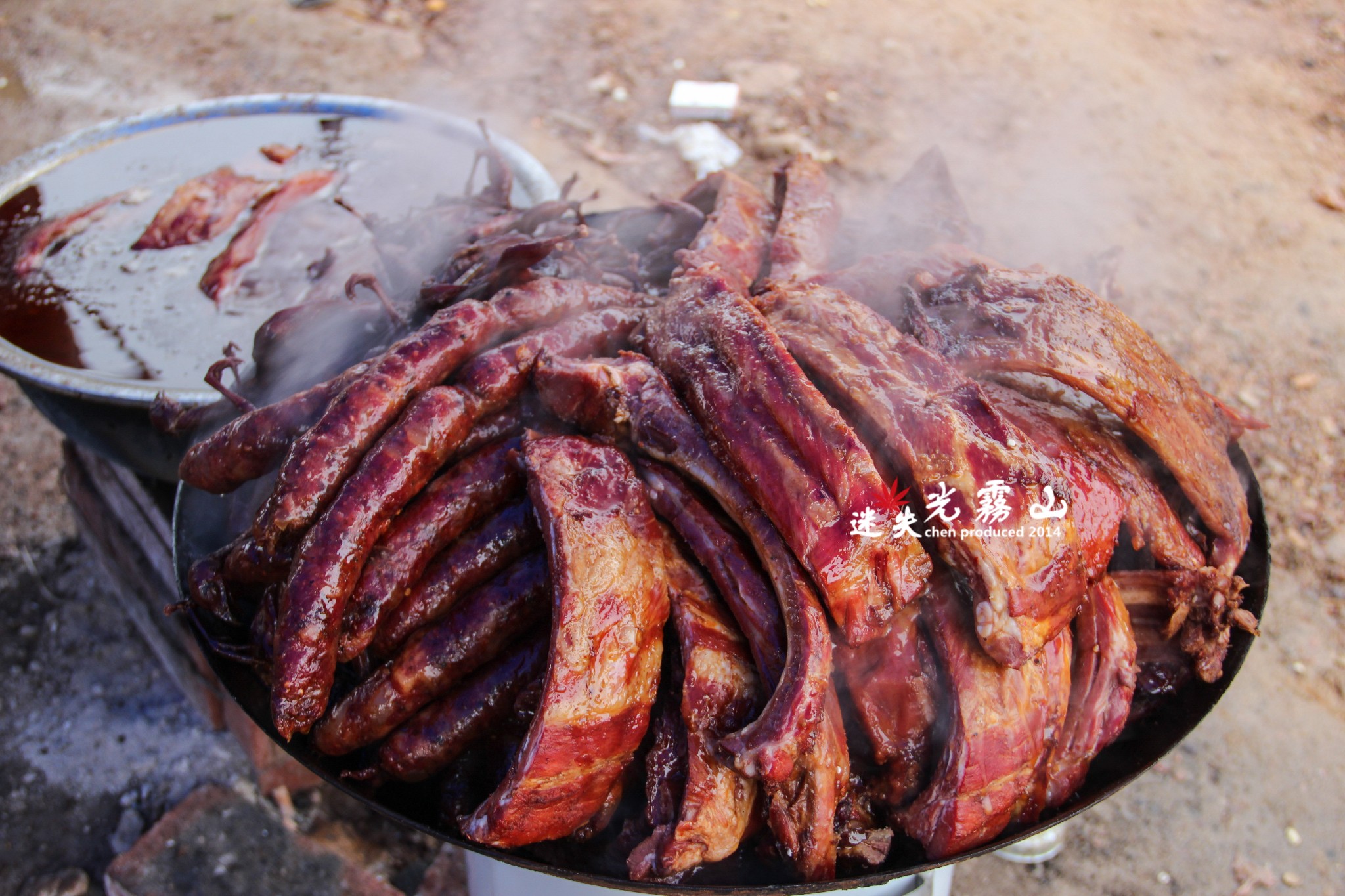 这两张放在一起有点儿邪恶啊,哈哈!牟阳故城一带的农家乐里,几乎家家都有烧烤架子!这一带的特色除了南江黄羊,就属这烤鸡了!