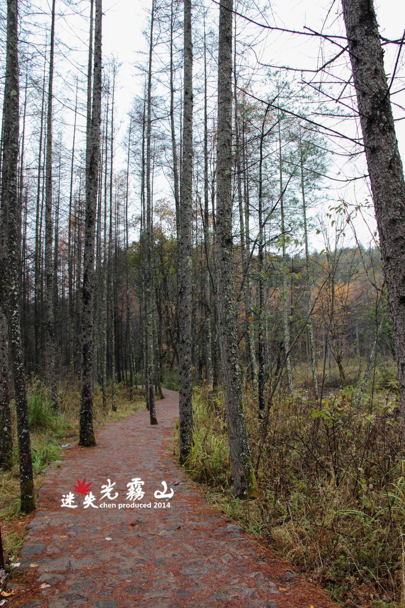穿过这一片森林,就到了黑熊沟的上入口。大多数人游览黑熊沟也都习惯从上入口进入,下入口出来。从路程上看,两种走法没什么区别,全程道路平缓,完全没有高度差。