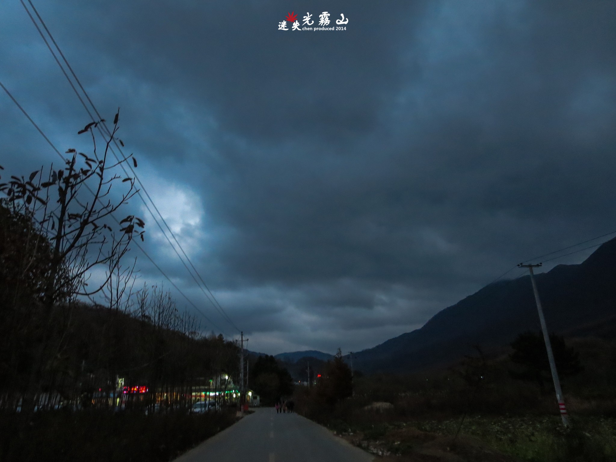 刚刚走过八角山,竟然又遇到了大雾。这一场大雾来的过于突然,不经意间就把我们完全包裹住。更让人难受的是,夜色已经悄悄袭来,雨水也毫不留情的打落在车上。前方的车辆早已不知踪影,能见度从10米左右一路狂跌,最可怕的时候,不足1米。回头看看,已经是好一大串队伍积攒在身后了,我这个领头羊就这么以不到10迈的速度,战战兢兢的在雨雾中穿行了半个小时。一边儿是山、一边儿是崖,毫不夸张的说,如果不是路边的绿色护栏可以让我大致辨别方向,我根本就下不来山。