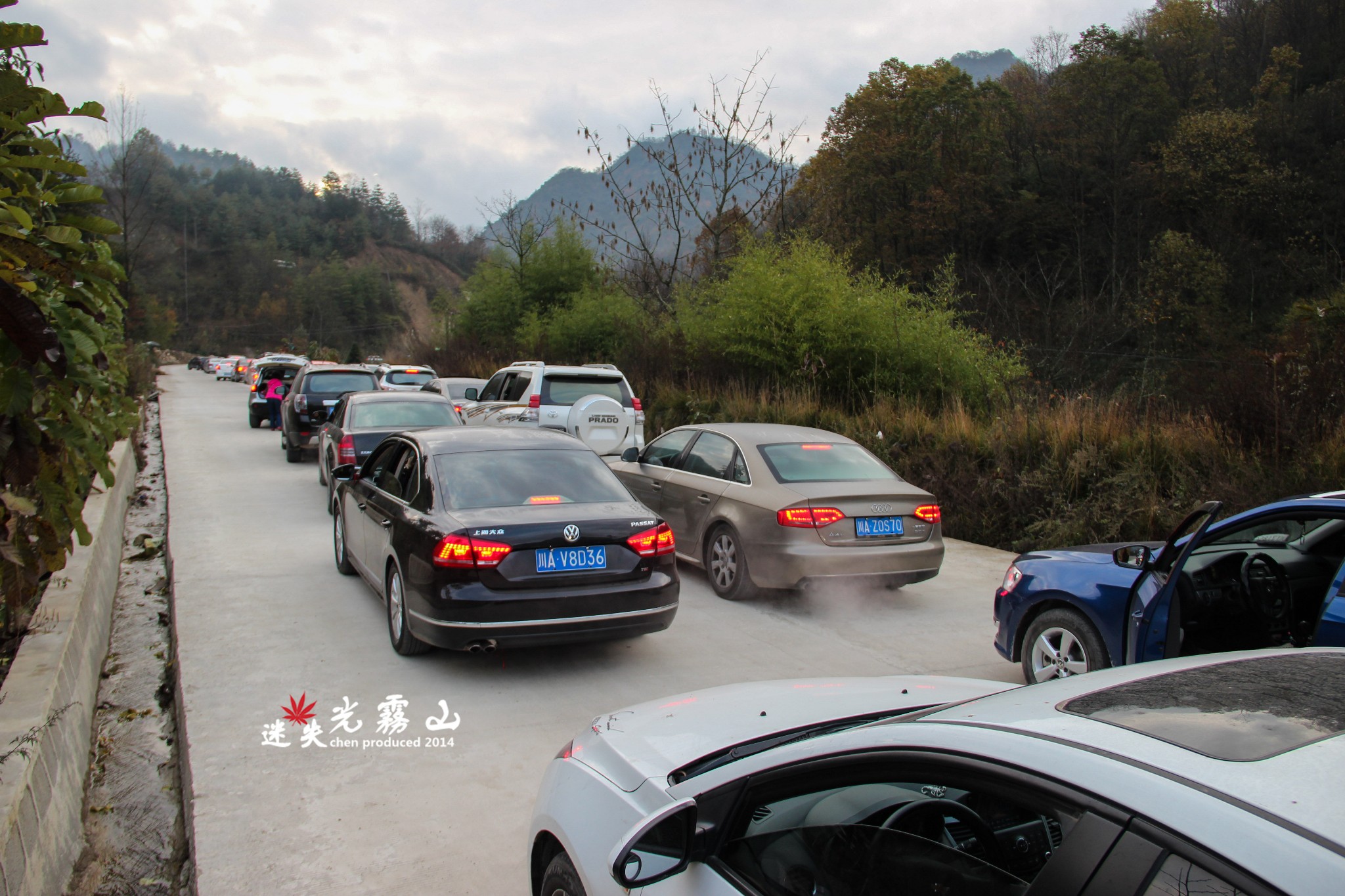从蜀门秦关开始,一路下坡,也就是几个弯的样子,便进入了铁路坝村,这也正是大坝景区的入口。眼前的车密密麻麻,排着长龙,刚才暗爽的心情荡然无存。尽管提前有很充足的心里准备,可看到这一幕时,仍然不禁倒吸一口凉气,果然是红叶节期间的光雾山(/poi/5431375.html),太可怕了!