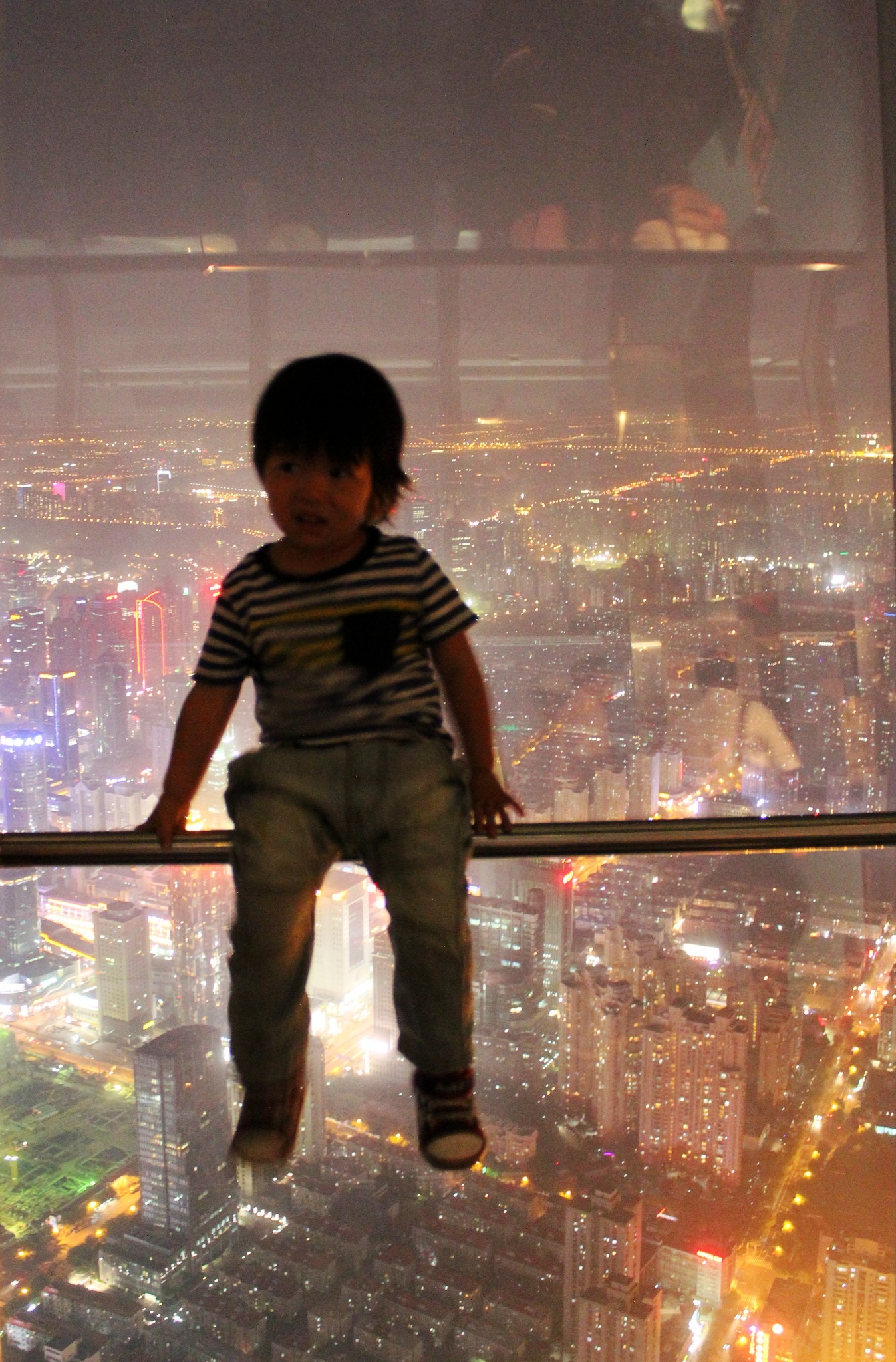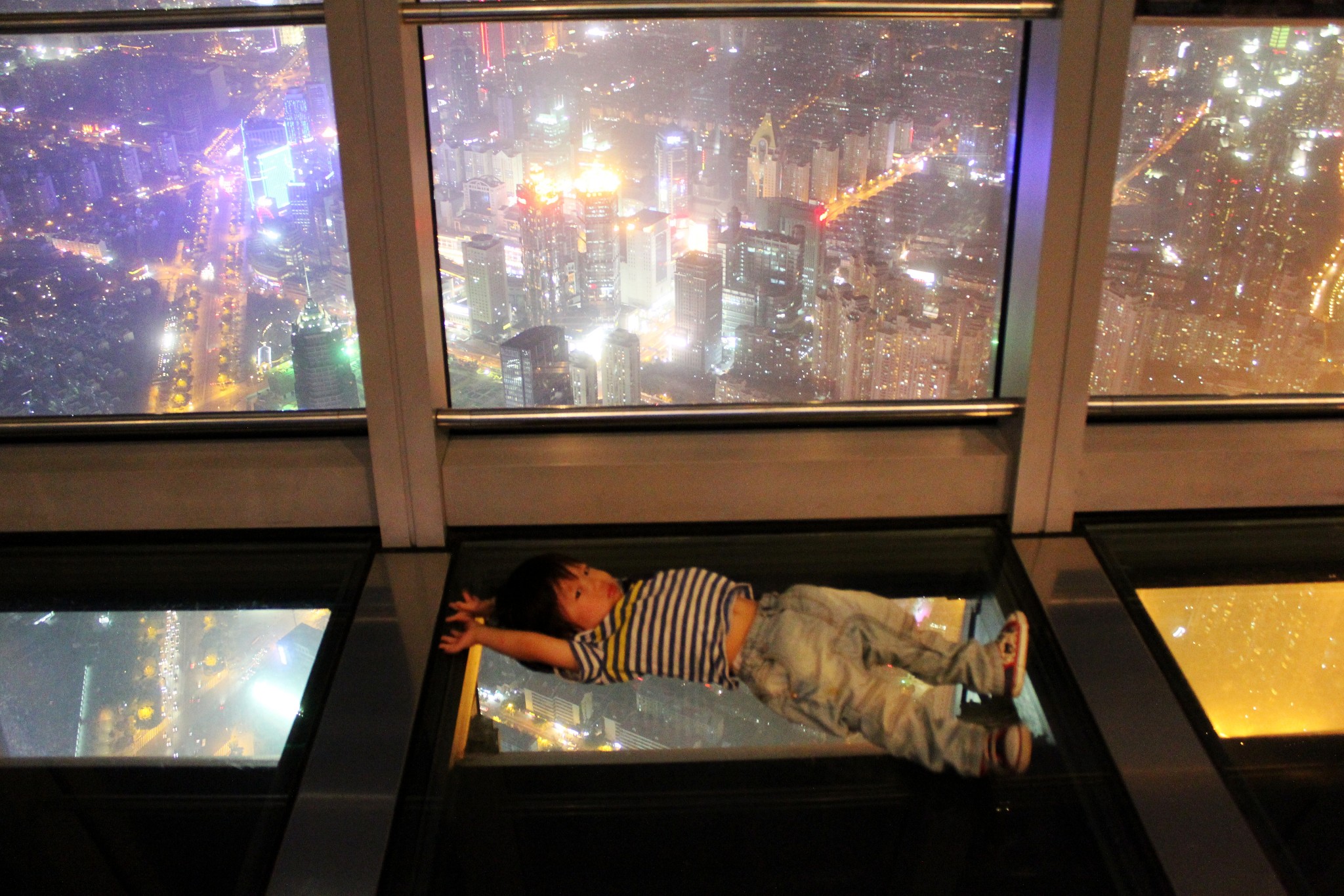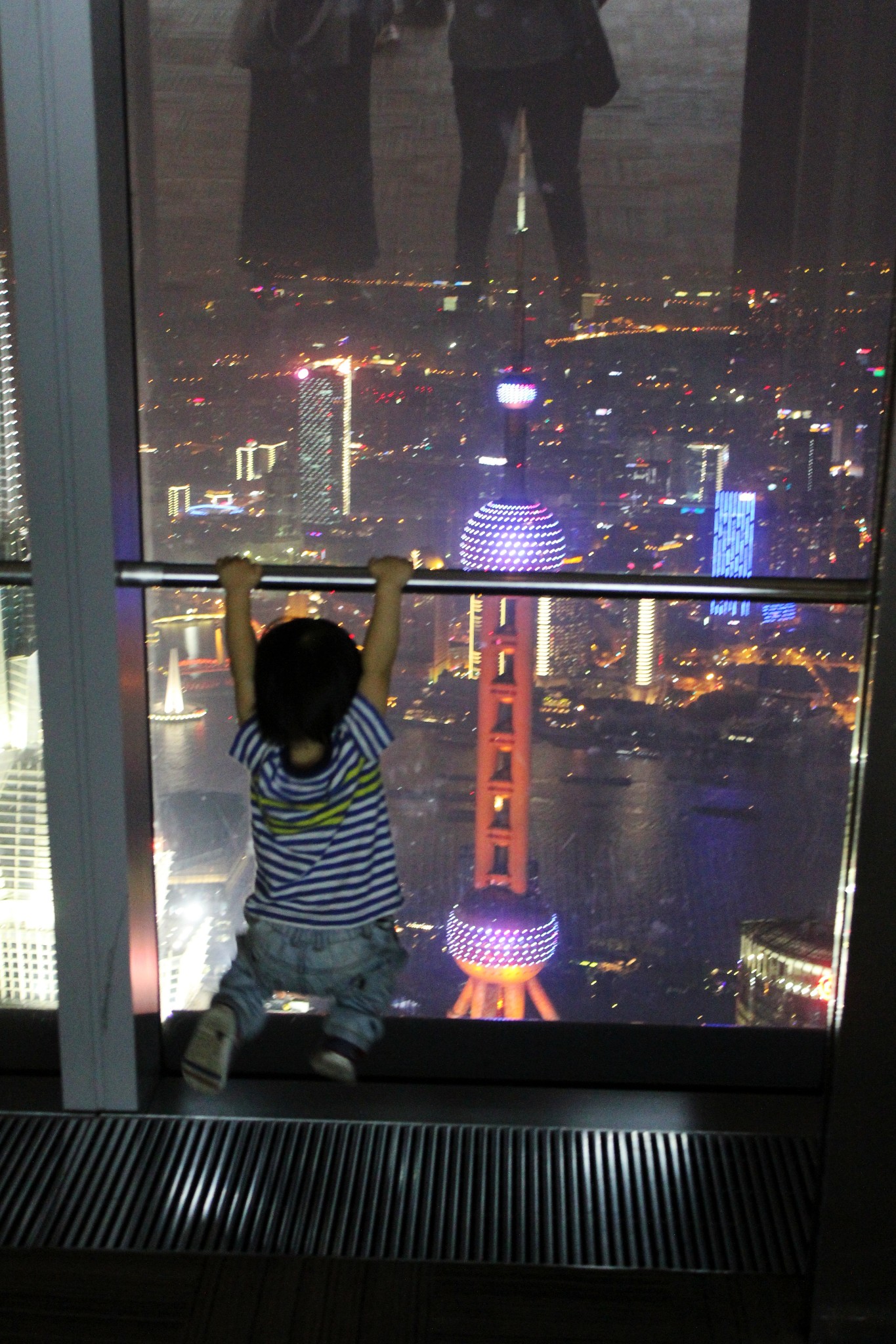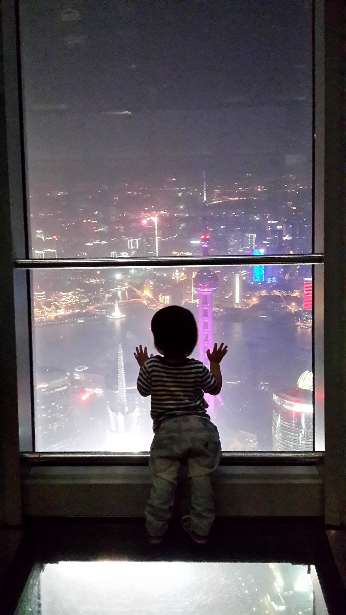 第一个地方就是环球金融中心,150的票价实在有些坑爹,观光厅根本没有灯光,到处黑乎乎的。还是下面天桥上欣赏的风景美好。难得天桥人这么少。
