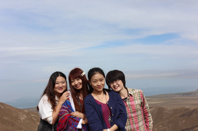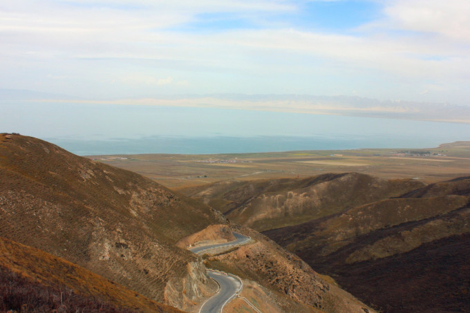 爬到山坡上看青海湖啦