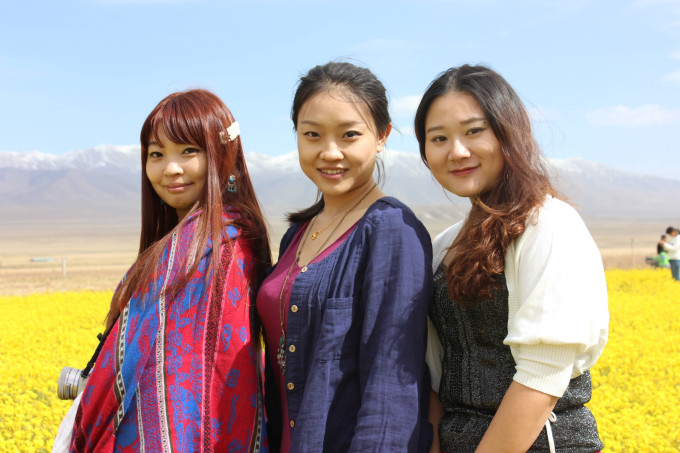 车到二郎剑景区的时候也没有选择进去,周围都是旅游团的人,进去都是人工开发的景点,又有什么意思呢,司机大哥带我们去了一个山坡,我们爬上去,就能看见大半个青海湖,山坡不算难爬,但是海拔还是有3000多的,所以大伙基本都是气喘吁吁。。。