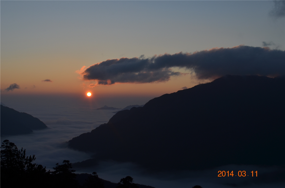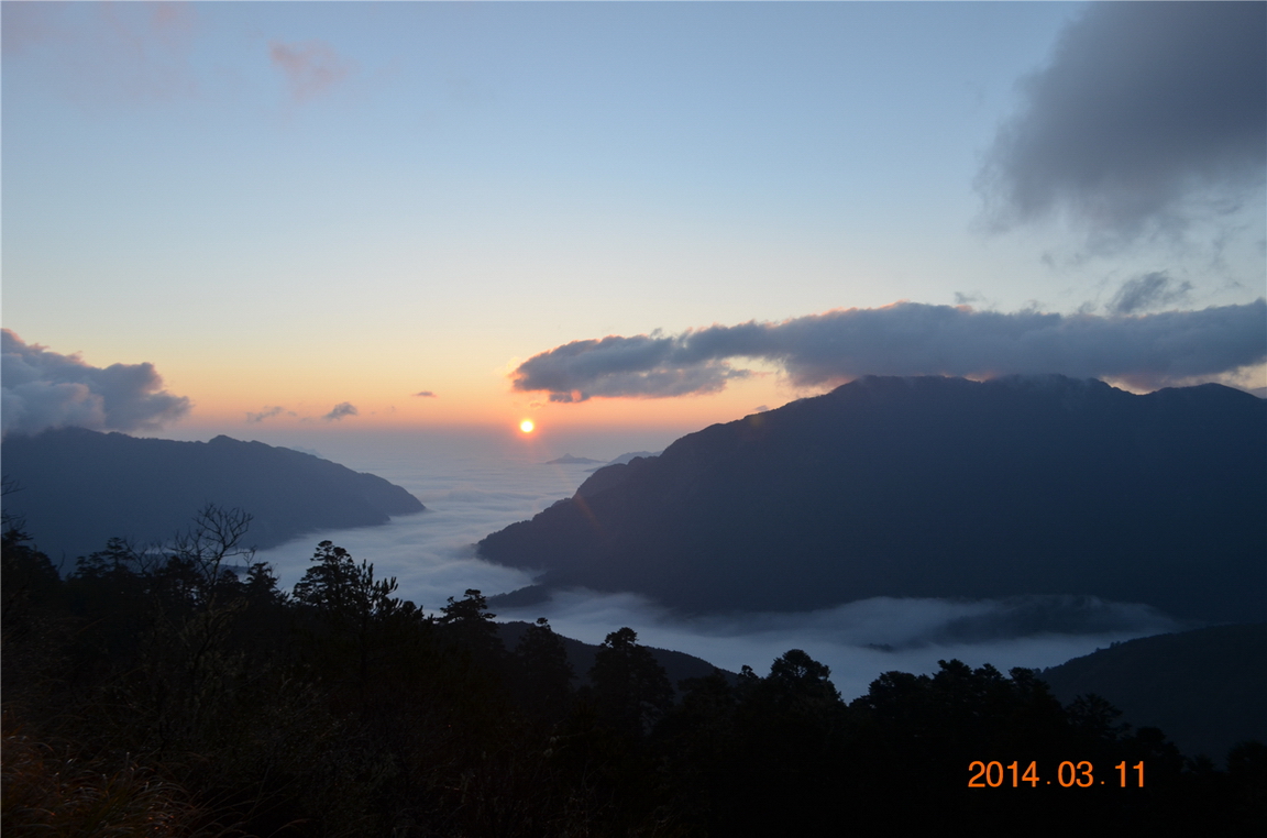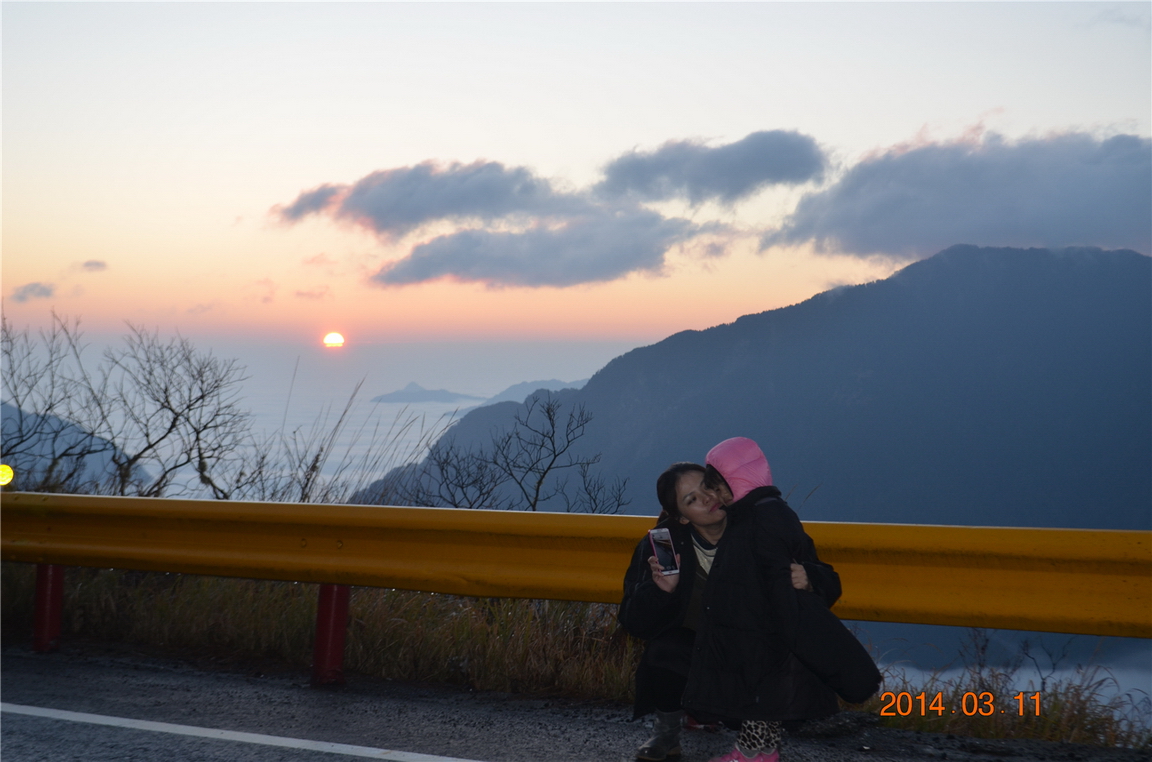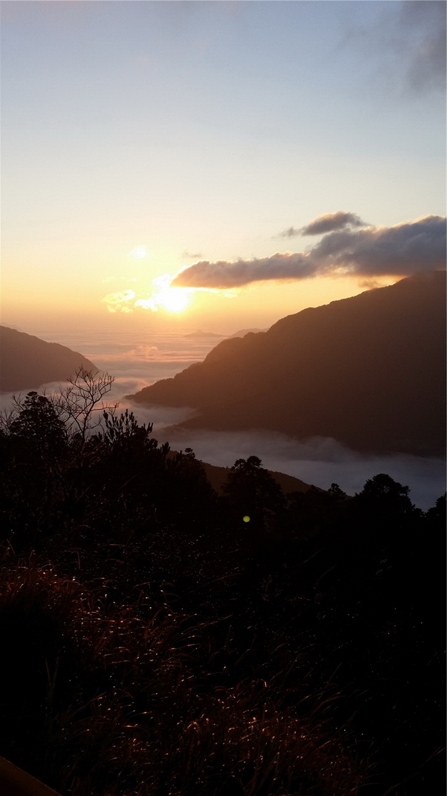 选择清境的另一个原因就是看日出。站在台湾最高的山上,半夜4点起床,民宿有叫醒服务,专车上山,讲解大叔也是司机,很幽默,车上备有厚衣服,但是这个日出和我想的不一样。大约山上的就是这样的吧。因为我们是一路爬到山顶,还光顾了台湾海拔最高的7-11,赶在太阳在山顶出现之前到达观测点,但是这时候其实太阳在平地上是已经升上来了,所以天都亮了,没有黑暗中一点光的感觉。还行吧。人生还是第一次看日出,我想要的那种估计得到海上看了。