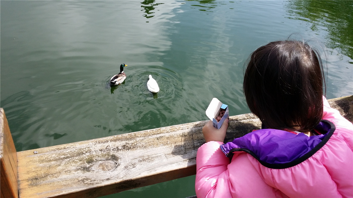 再一次来到小瑞士花园,天气很好,兜子又迷上了喂鱼和喂鸭子,也可以在自动售卖机上购买,一样的10台币一盒。
