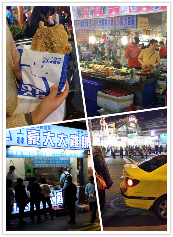 扫完货,去士林夜市,LP念叨的是豪大大鸡排(/poi/26756.html),果然够大,和武汉的味道一样,看来武汉的台湾美食学的很像啊。