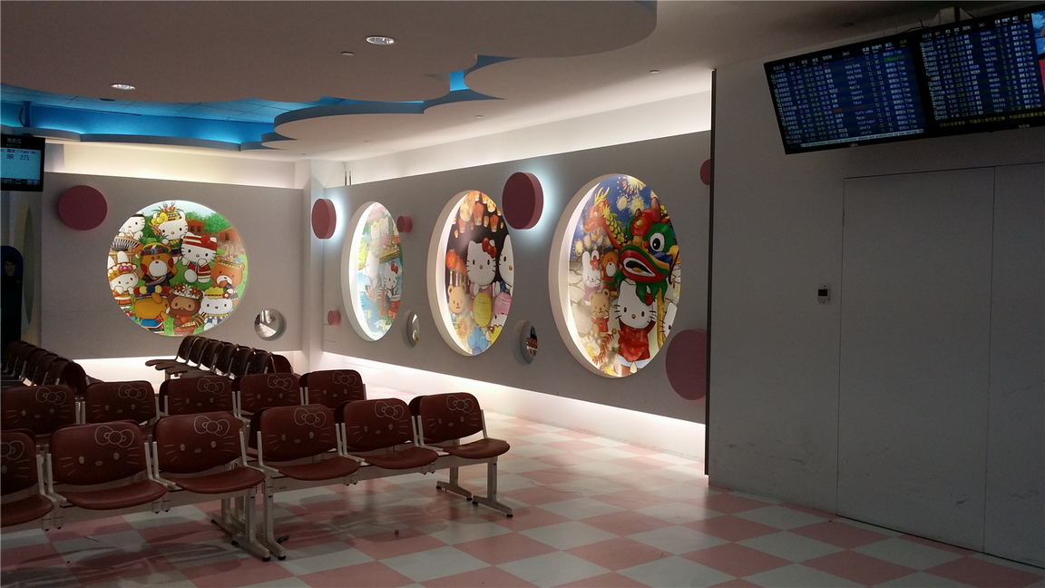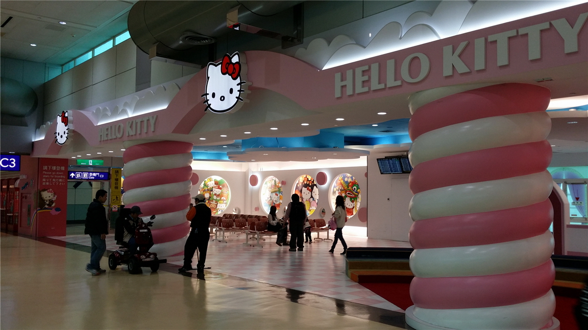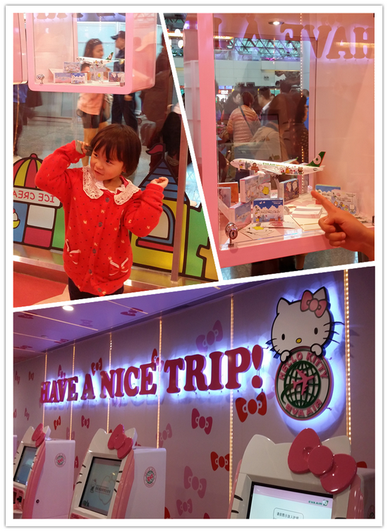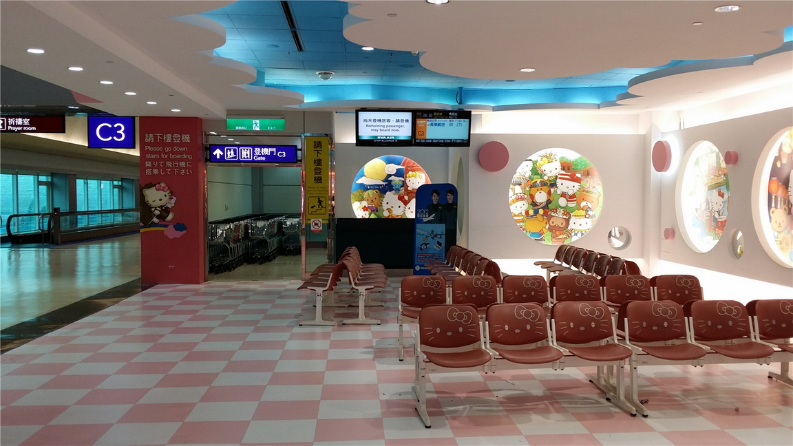 台湾桃园机场,长荣航空的HelloKitty专用值机室。可惜我们回香港的航班不是HelloKitty航班。