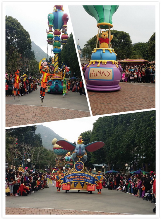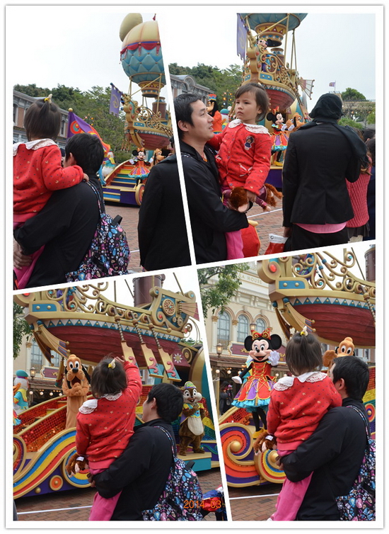 下午的迪斯尼人物大游行,这也是迪斯尼的一大看点啊。购买了迪斯尼的主题服装可以有优势地点的座位观看,不然就是像我们这样站在马路边上看了。