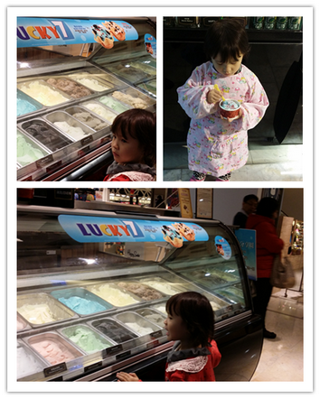 新光三越里面的冰淇淋店,兜子等不及了。这家新光三越离我们住的地方很近,LP必逛,扫货必选之地啊。