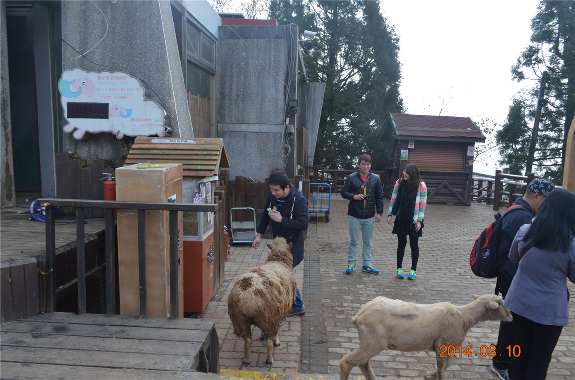 羊咩咩已经很熟悉游客了,基本不吃地上的草,等着游客喂食。这个自动售卖机可以自行购买,看到我准备买,一下就过来等着了,迫不及待啊。10台币一盒,很便宜啊,还有羊奶卖,味道和牛奶不一样。