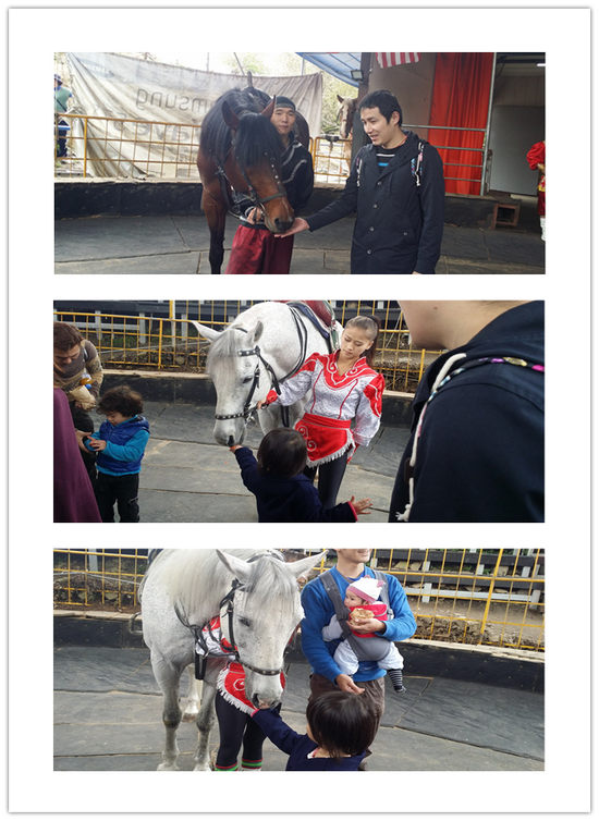 没有剪毛秀,只能看马术表演。也可以喂马马,兜子胆子很大,我害怕咬我手呢,有技巧,驯马师说手掌摊平就好。