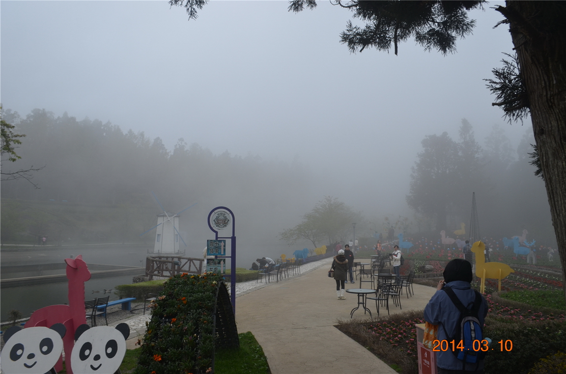 山上,因为下过雨,一会就有很大的雾,能见到很低,但是在这个花园里,也别有一番意境,大家自行体会吧。