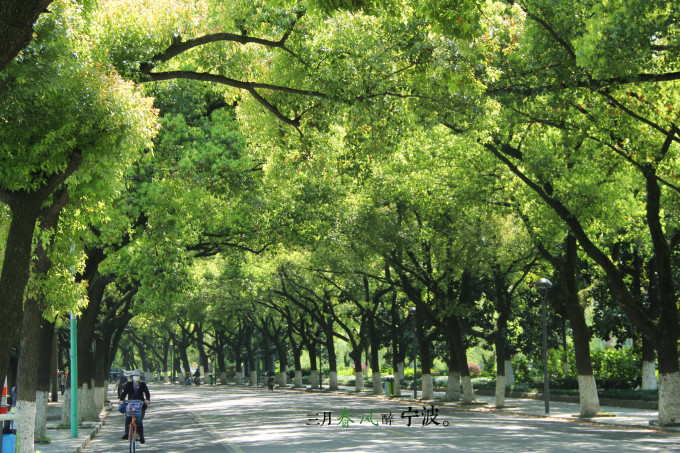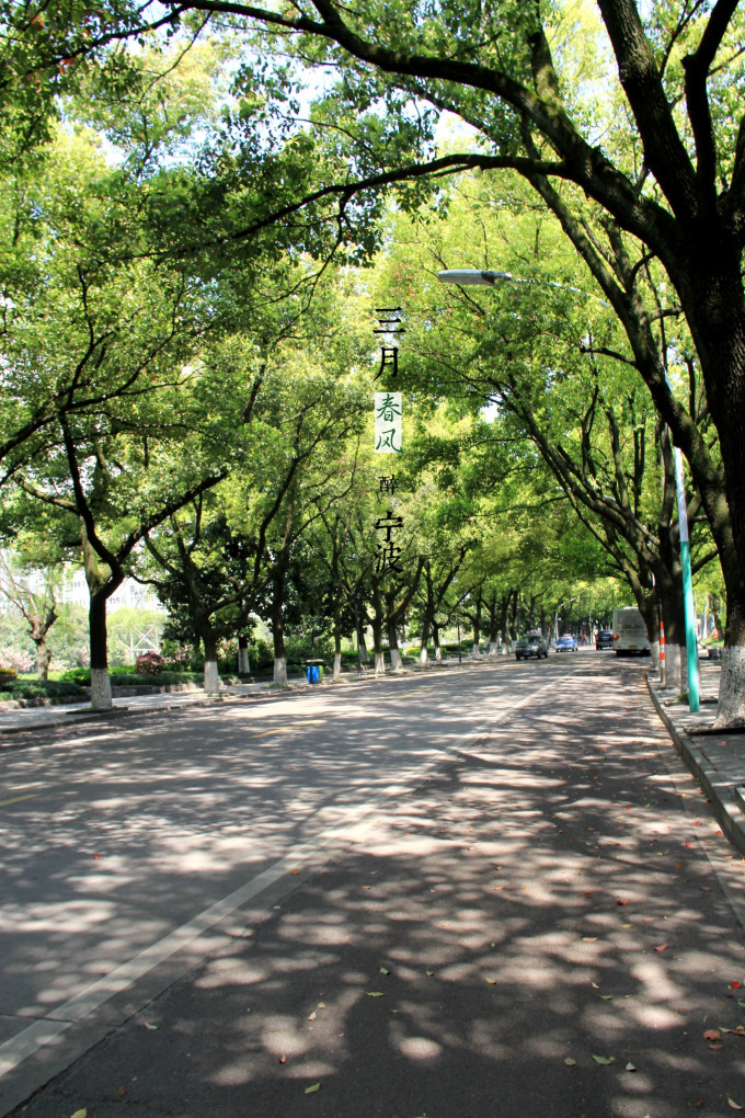 走在清晨的宁波街道,空气很是清新,阳光透过密密的树叶洒在马路上,斑驳的光影很是好看,走在这样的道路上,微风相随。