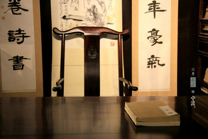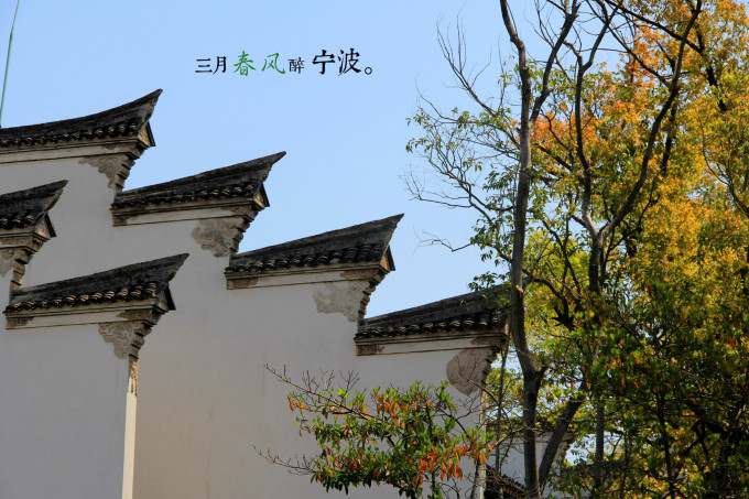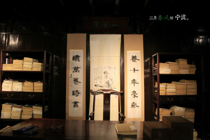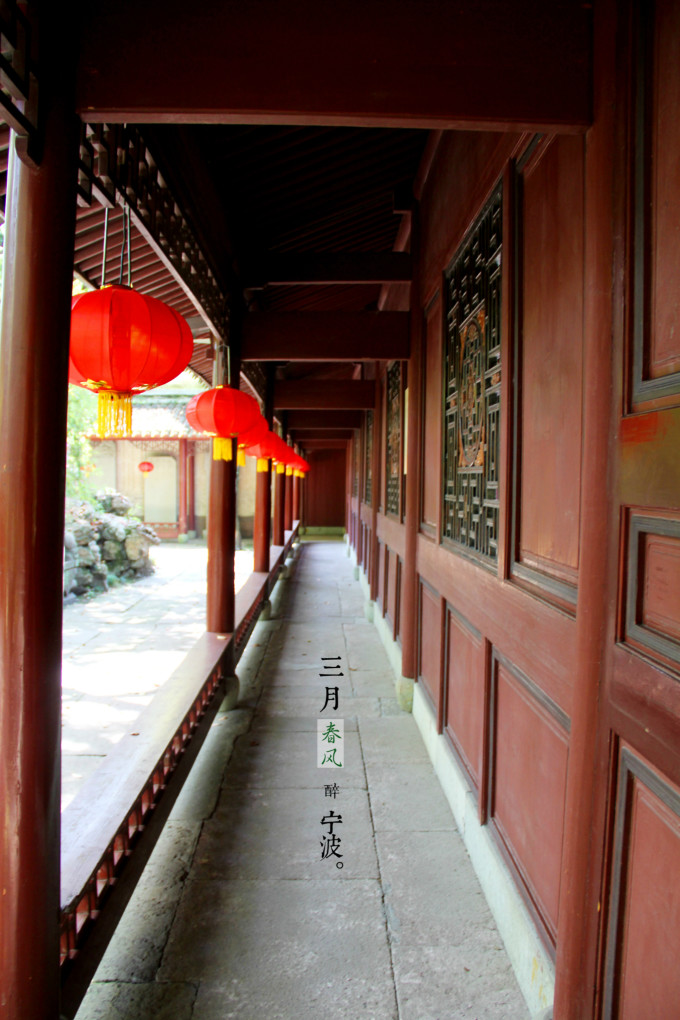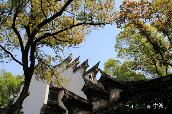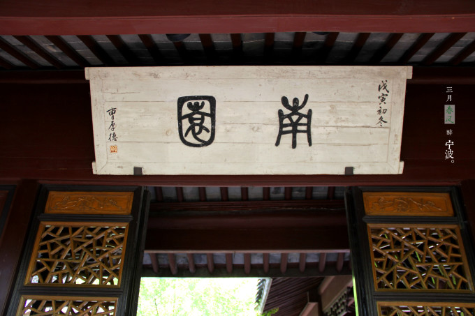 公交车在天一阁站下,步行到天一阁门口,大门被大大小小的树簇拥着,古朴,静谧。