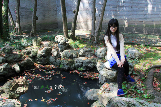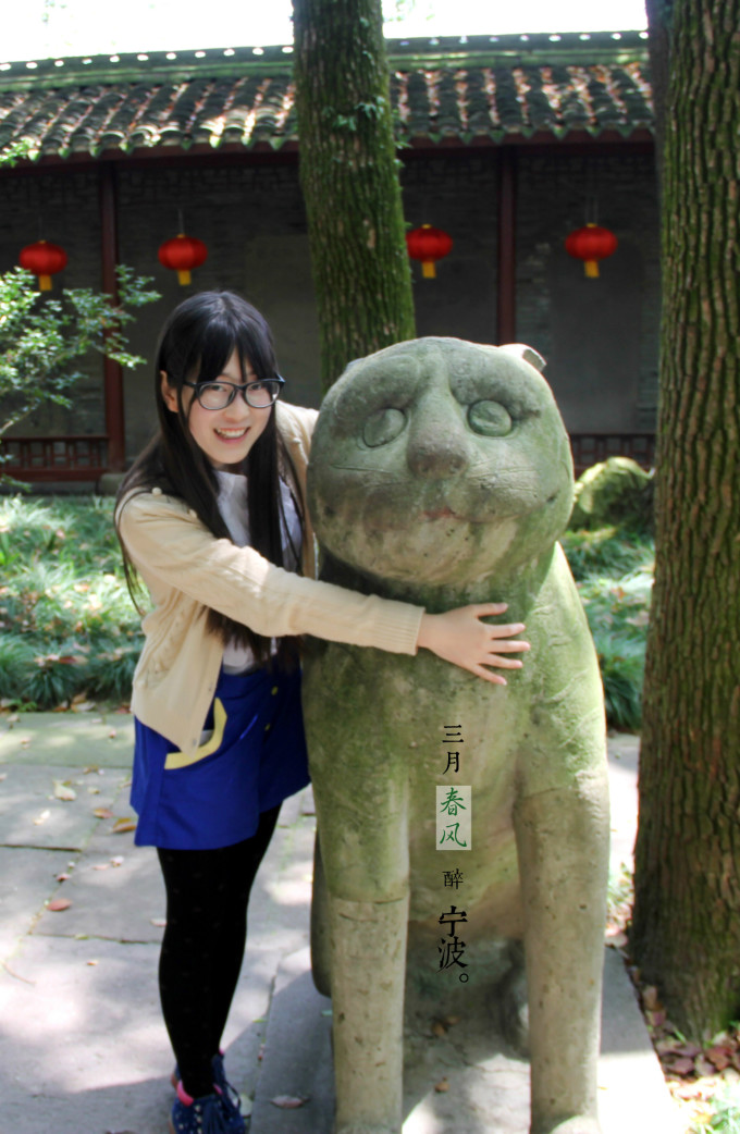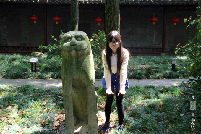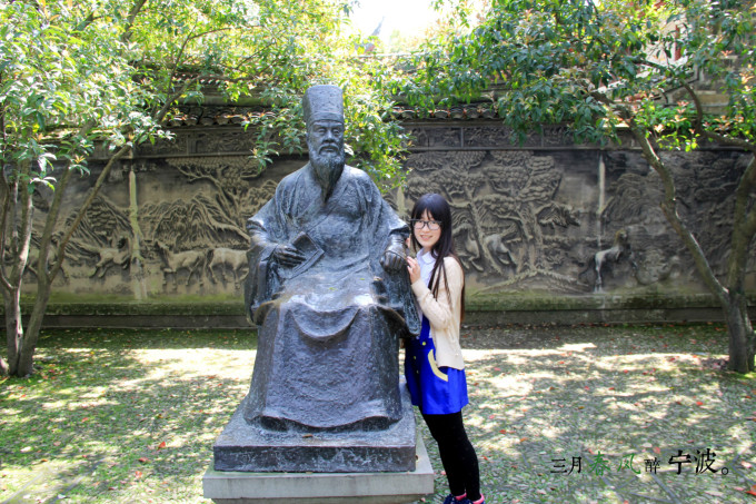 一进门,瞥见的便是很大的范钦像,环绕着的是郁郁葱葱的树,小石子砌成的路很让人欢喜,从石子中冒出的绿芽儿也很让人怜爱。