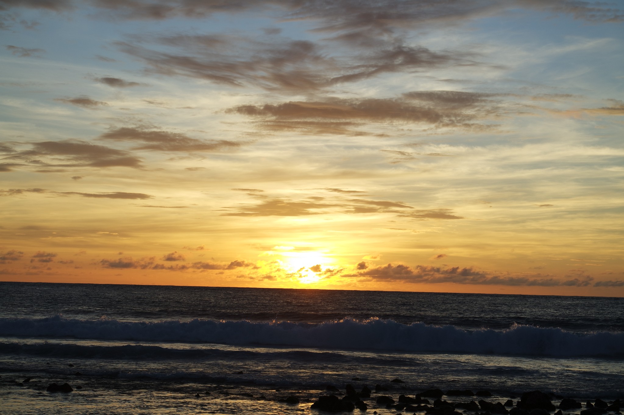 一开始有热水的,还放了一浴缸的水,后来竟然没有热水了,大半夜的不去找人了,早点睡吧,沙屋那里的海浪比较大,晚上声音比水屋那里大多了。在马代的时候,生物钟还一直是处于中国的状态。马代时间五点半我就醒了,一样醒的这么早,就出去看看日出吧,没想到沙门门前正好面对日出,外面就是海,位置还可以,怪不得晚上海浪声音那么大。