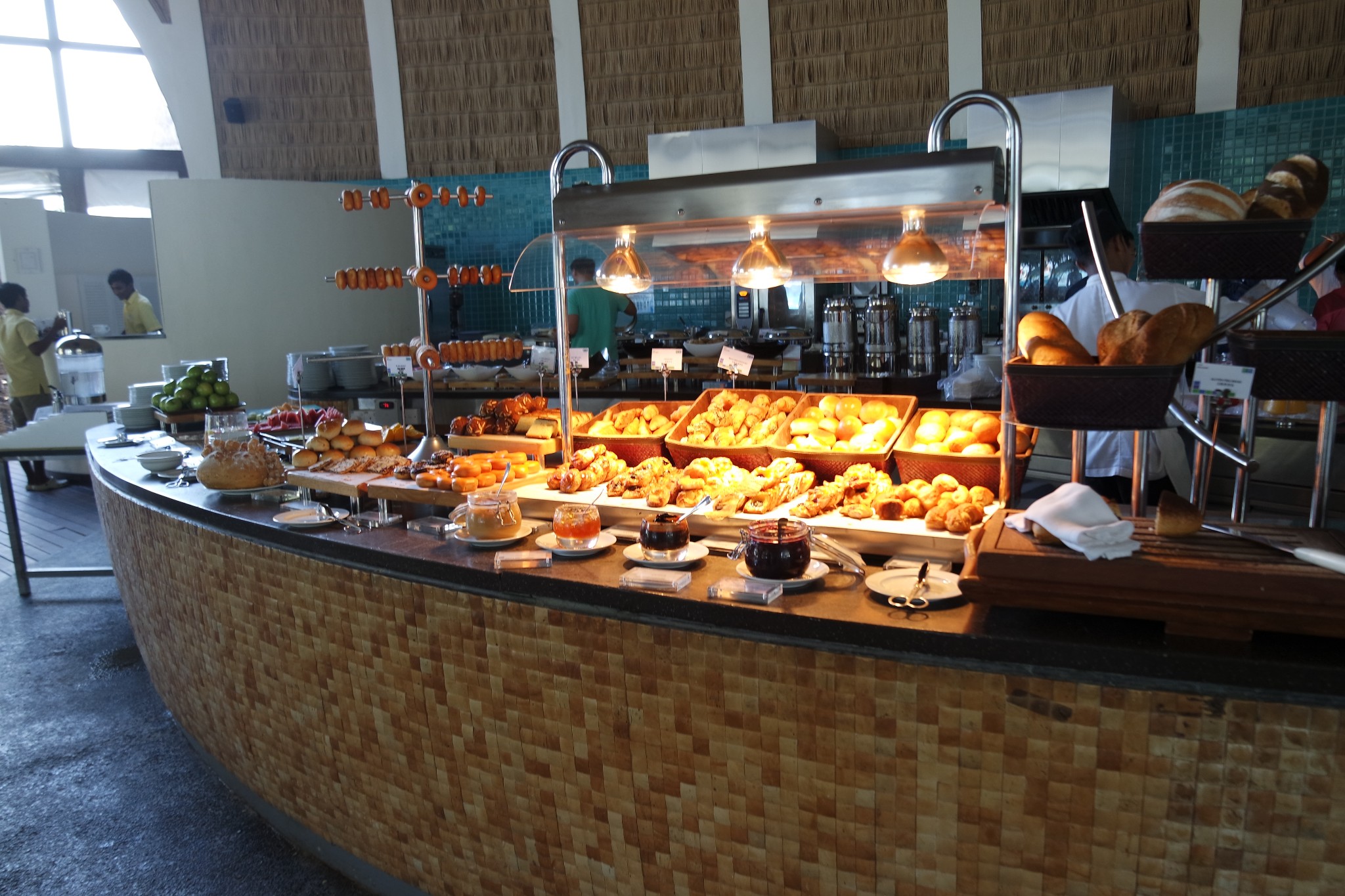 早饭品种也不少,自助形式,这家餐厅的晚饭也是自助的,晚餐是59还是69美元一人,因为我胃口小,我们就没去吃过这家晚上的自助餐。早饭面包种类非常多,早饭一开始吃吃觉得不错,几天吃下来几天就腻了,每天东西几乎差不多。