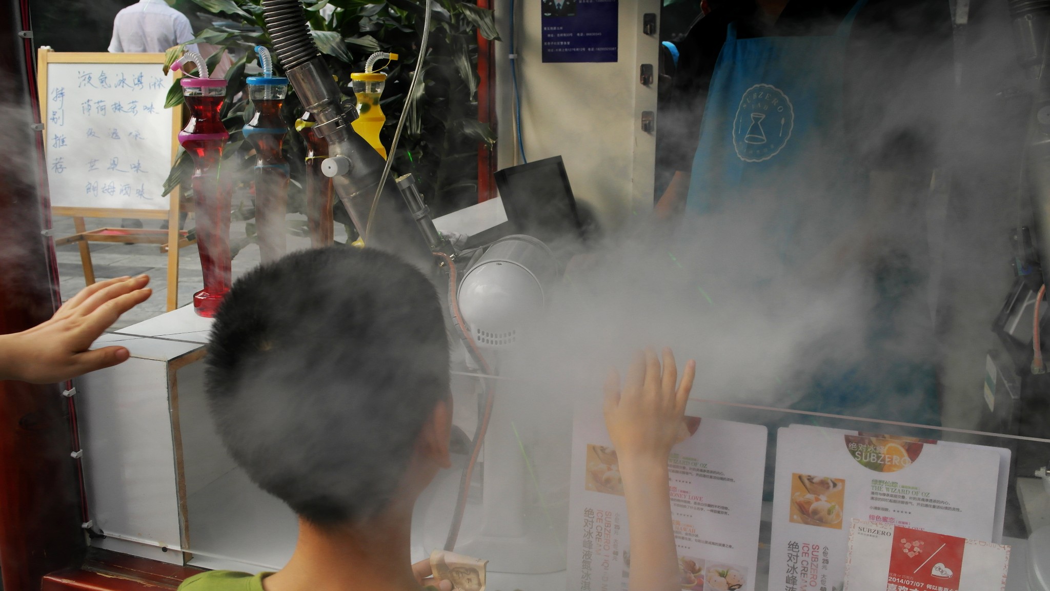 出来的时候,发现街口卖液氮冰激凌的小伙也不错啊。看来成都帅哥多。