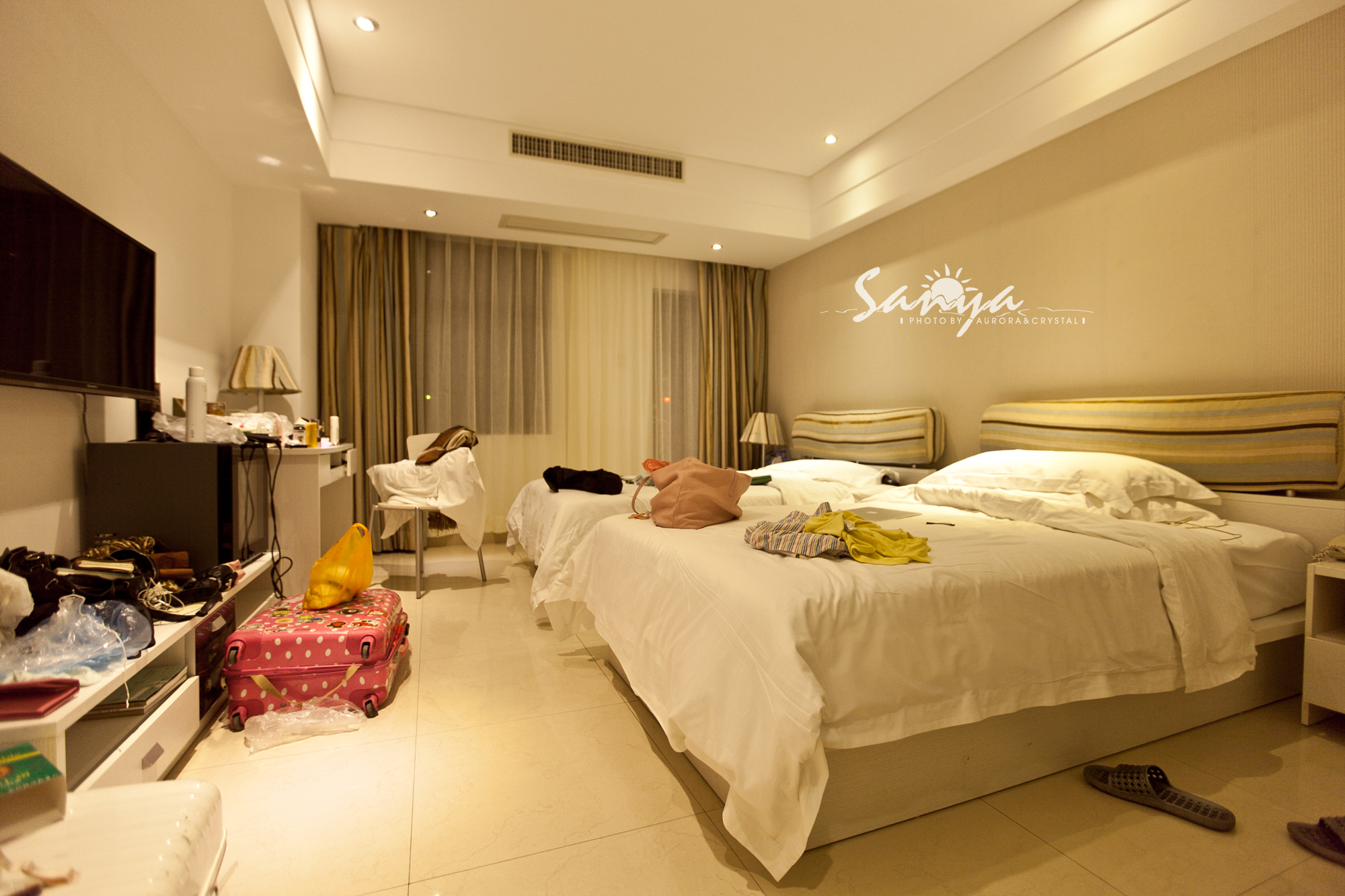 我们选择了前两晚住在大东海的柏瑞精品海景酒店,订了雅致双人房,含早420一晚,这家酒店有自己的私家海滩,步行大概五分钟,你也可以坐酒店的电瓶车去。虽然订房网上标的是豪华型酒店,但实际也就三星半的标准吧,但好在房间明亮干净,设施也比较新。酒店有免费泊车位,wifi速度也很快。