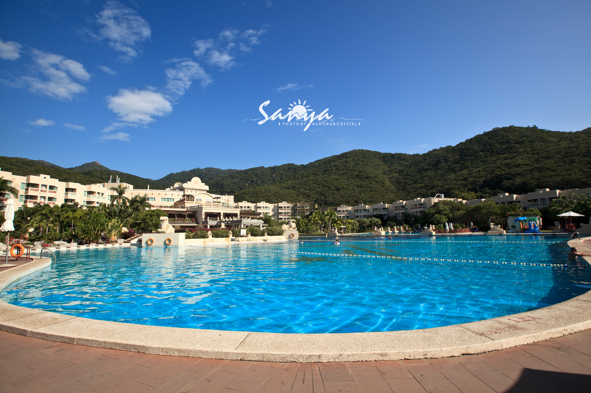 仙人掌酒店的泳池是整个亚龙湾酒店中最大的。泳池里还有水球可以玩。