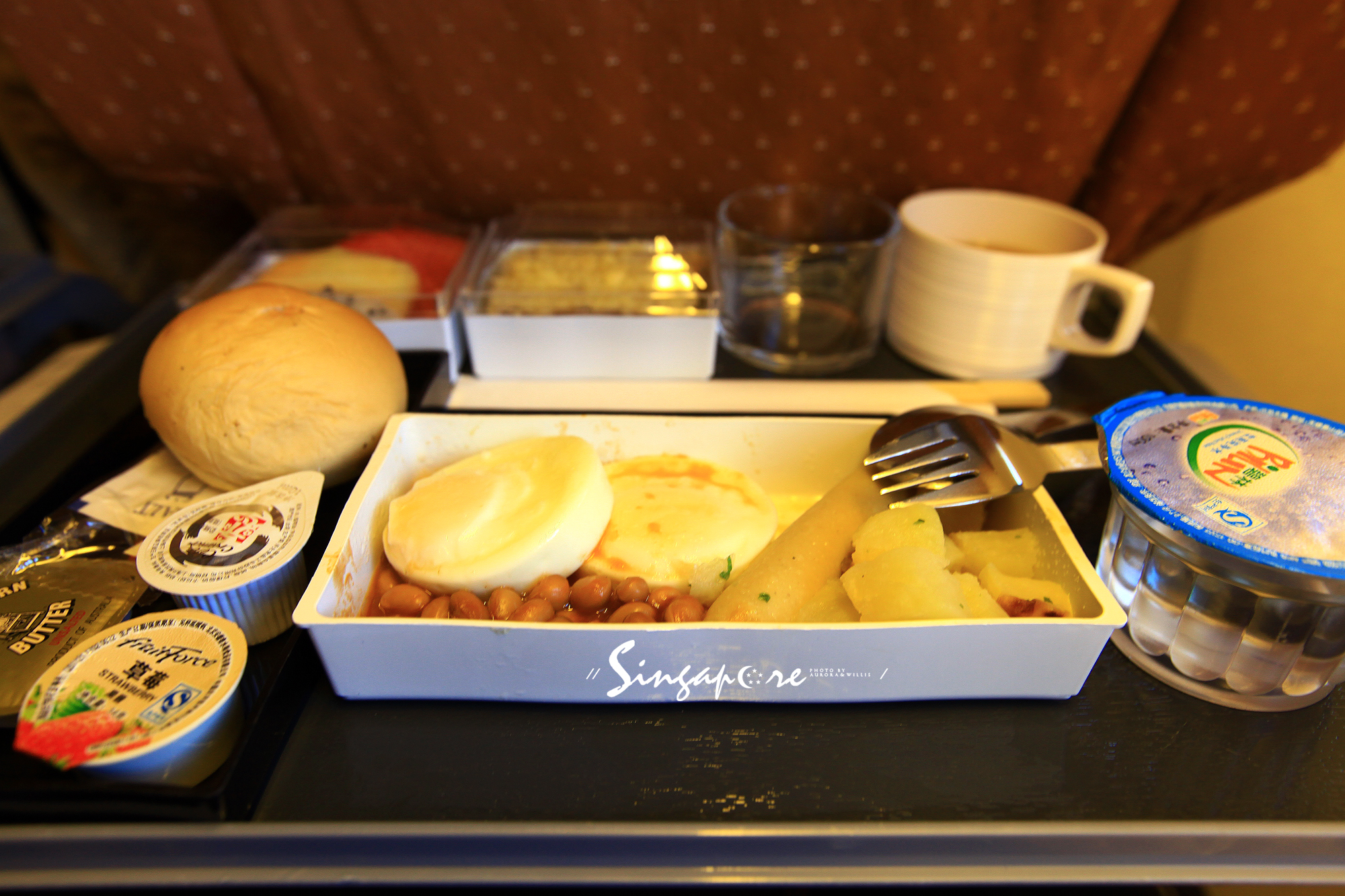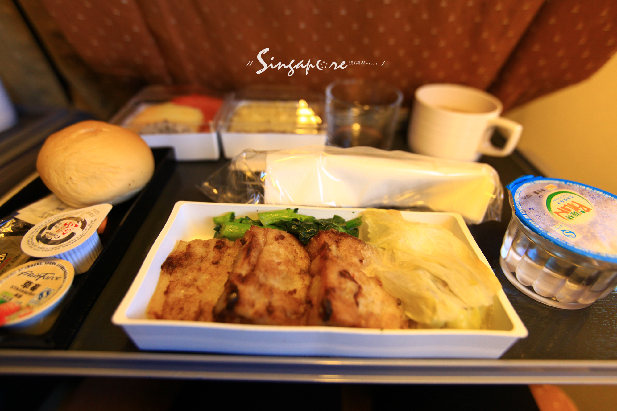 旺先森点的中式早餐,主食是港式点心,比起从前吃过的那些不堪回首的飞机餐,新航的飞机餐真的是业界良心了。