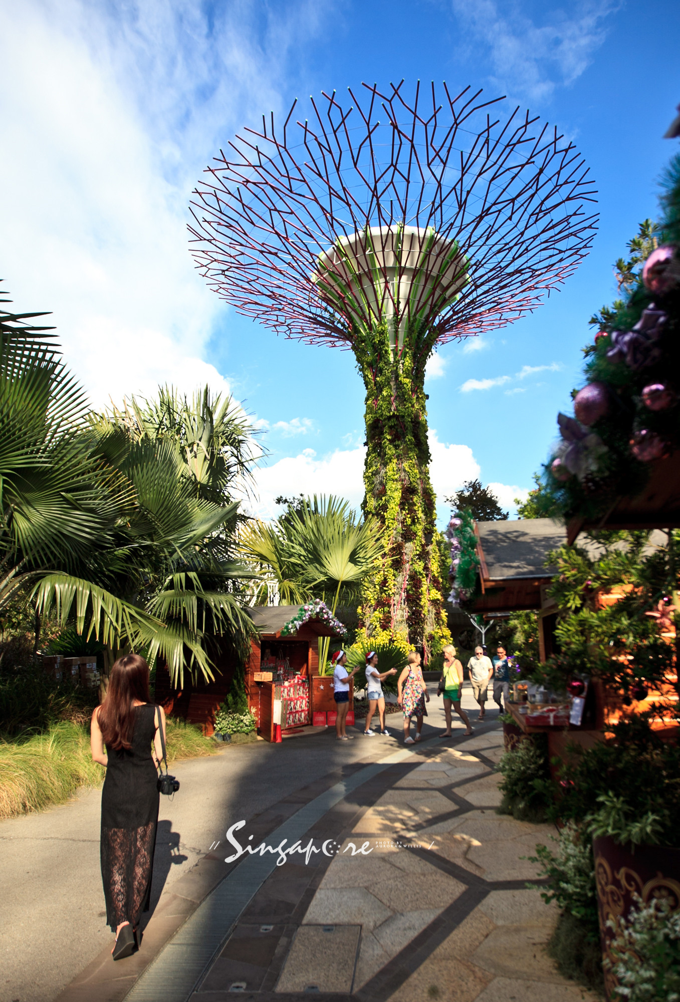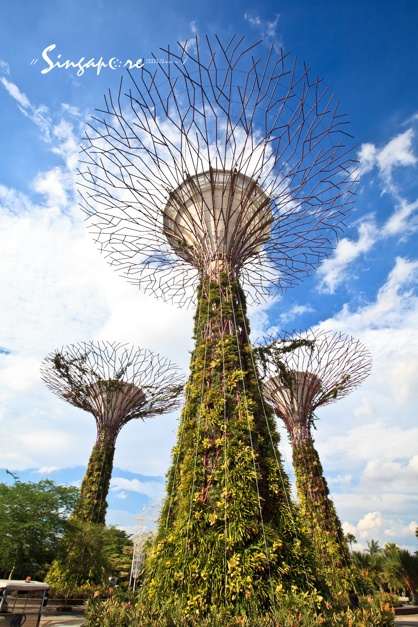 爬满了热带攀附植物的超级树,仿佛擎天柱一般屹立在花园里。