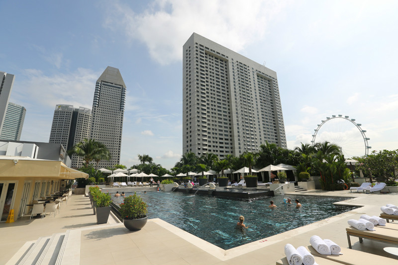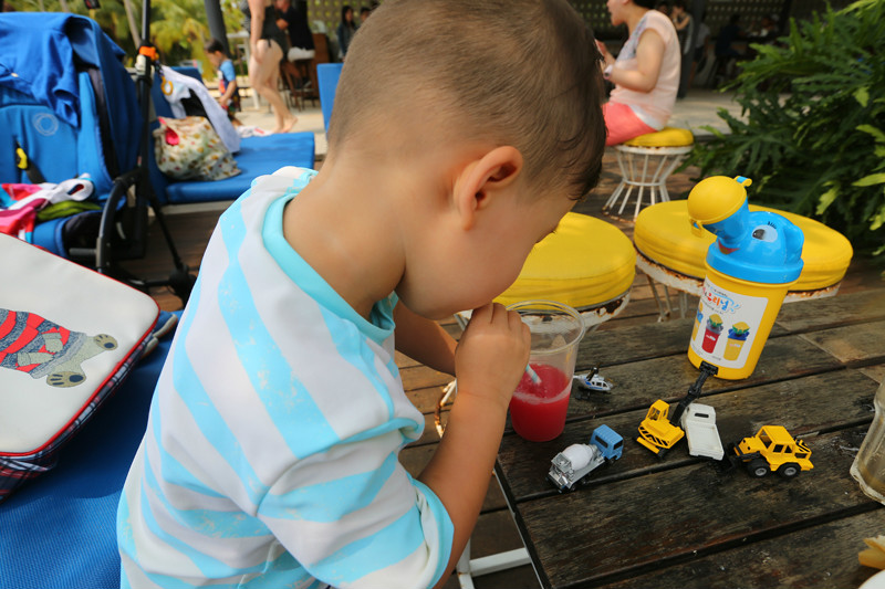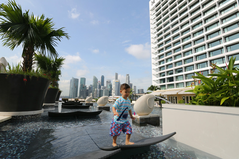 自从有了小小兽我几乎就暂别了自己热爱的建筑,和老公都一致认为,对于孩子最好的养育就是妈妈的陪伴,父母操劳了一辈子,没有义务帮我们再照顾孩子,我终究也不是事业型的女强人,如今每天和小小兽一起的日子反而让我觉得更充实,而且这并不是我单方面对于他的陪伴,他带给我的新奇和美好更多,让我重新又经历一次无忧无虑的童年。不过多年以来,尤其是在旅行中关注建筑,关注人文已成为一种习惯,新加坡文华东方(/poi/5542951.html)的平面设计我超级喜爱,感觉比起前两晚的酒店更适合带孩子来住,交通流线分明,更便捷,从大厅到达房间,从房间到达餐厅,从房间到达泳池,甚至是从餐厅直接去泳池,带孩子出来需要带的东西很多,如果在酒店中路径过长的确实有些麻烦。文华东方(/poi/5542951.html)酒店是内廊式设计,电梯在中庭,从房间出来走几步就是电梯,电梯间面对着餐厅,从20层下到4层吃早餐,早餐后直接电梯上一层,走几步就可以到达室外露天泳池,今天上午依旧泡酒店,这是到新加坡的第四天?终于天空彻底放晴!大大的太阳,蓝蓝的天空,白白的云朵,这样的天气才是我心中的新加坡嘛!当然,四季如夏的新加坡,玩水才是正经事儿!