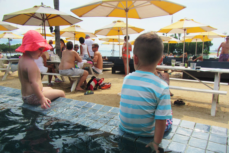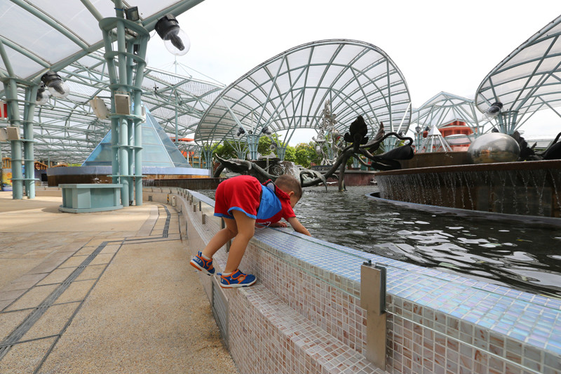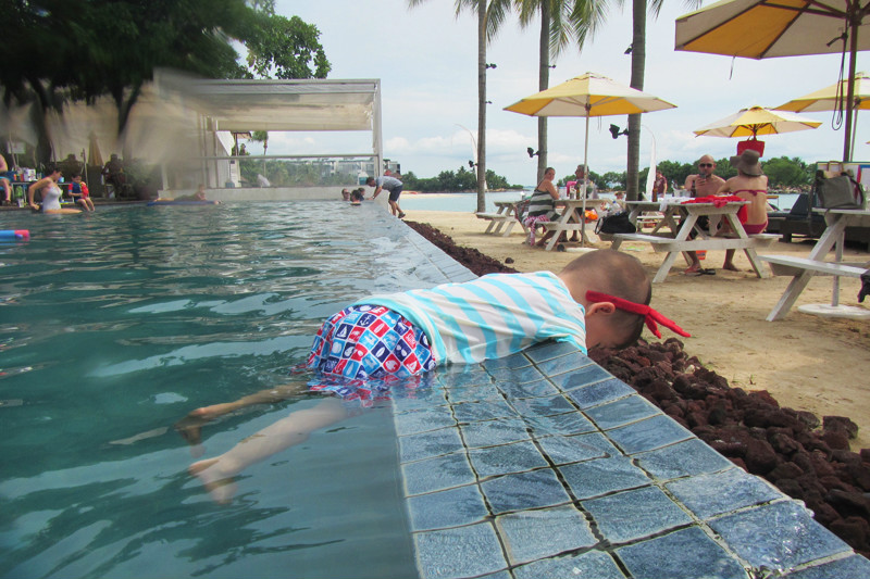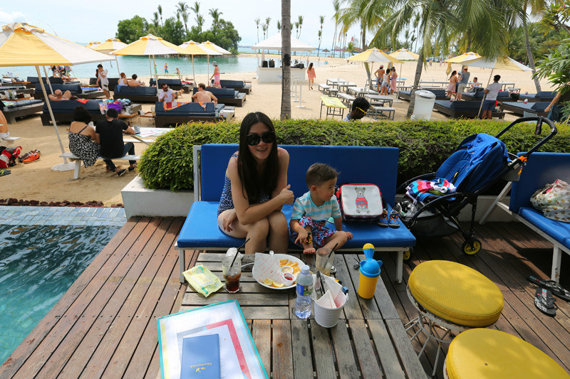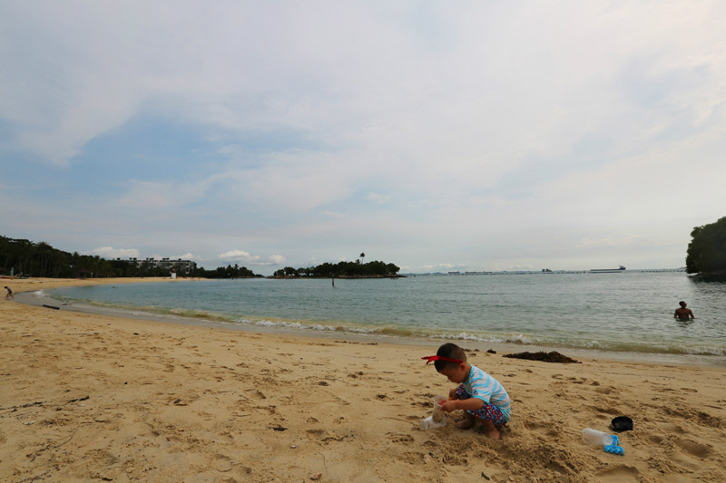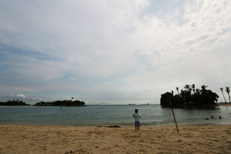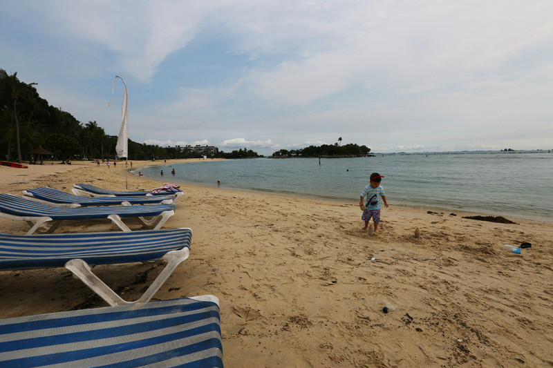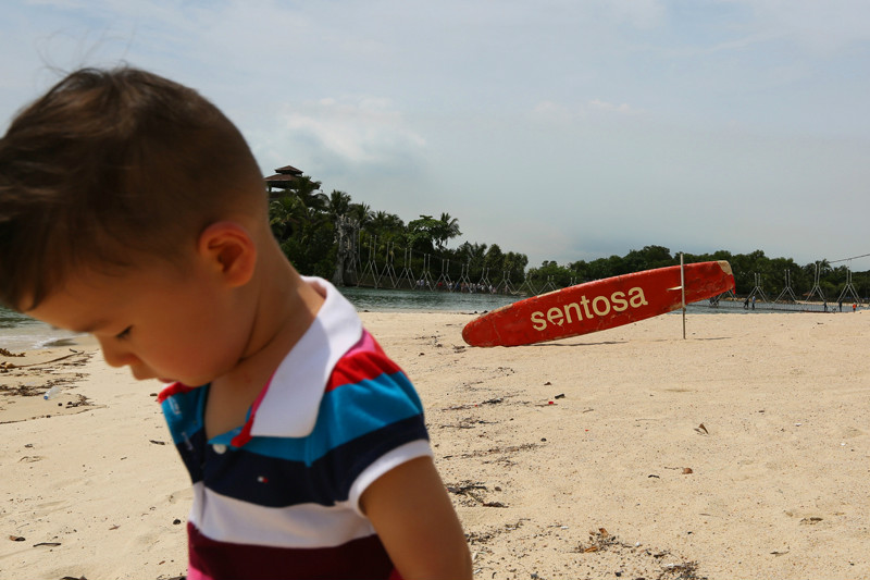 的确太喜欢新加坡这个国家了,国土面积虽小,但是包罗万象,去到各处都方便,半小时从动物园到酒店,又半小时从酒店再回圣淘沙。之所以再来圣淘沙是因为我有个小小的心愿还没有完结,当年一个人在圣淘沙拍过一张很经典的照片,蓝天,白云,大海,沙滩,冲浪板,还有小小的我在沙滩上奔跑,如今带着小小兽再来新加坡很想去看一看当时那块冲浪板是否还在,我记得冲浪板是红色的,上面写着“sentosa”。