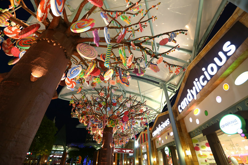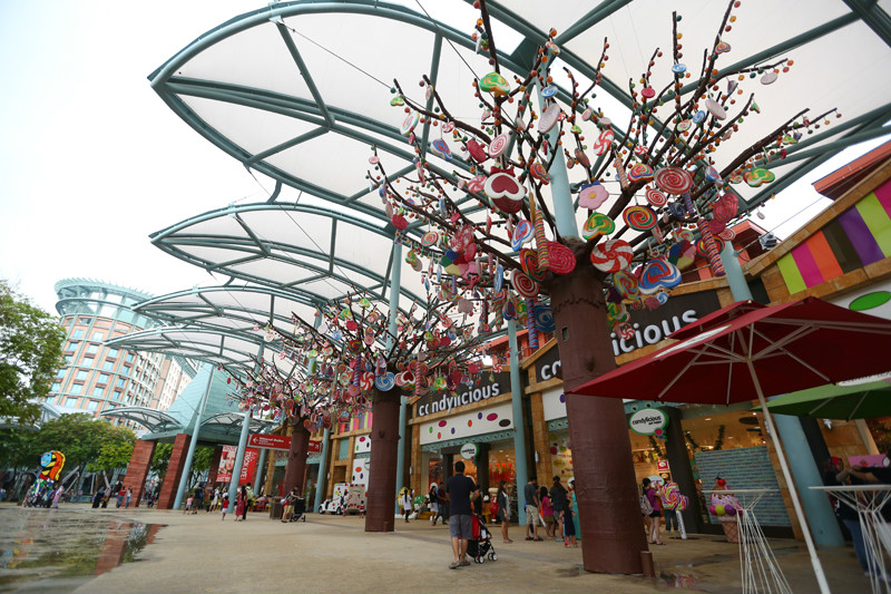 机场到圣淘沙岛(/poi/10785.html)大概半小时车程,其实很想住香格里拉,但是圣诞假期酒店有特殊规定必须住够三晚,无奈只好放弃,却没想到我们临时决定的Hard Rock酒店(/poi/83362.html)位置超级完美!办理完入住前往客房时候意外看到期待已久的糖果屋!雨恰好也在此时停了,放下行李,换上飘逸的夏装,重新开启夏日模式,糖果屋我们来啦!