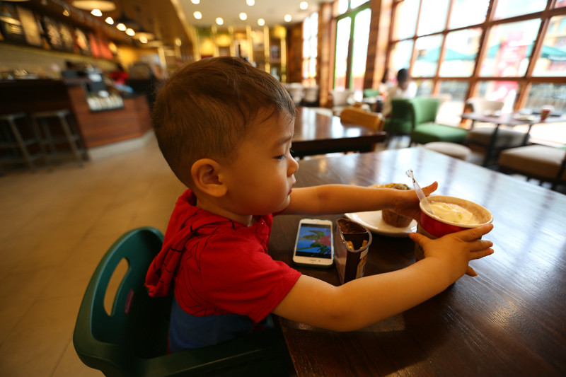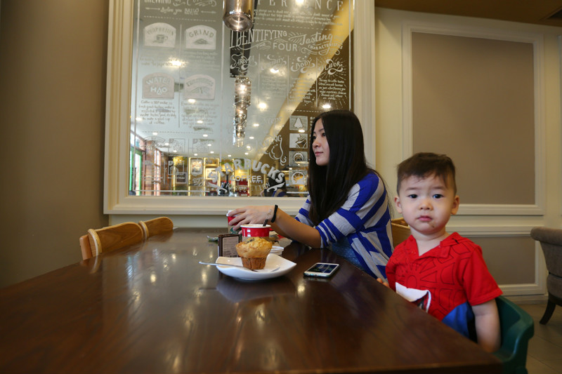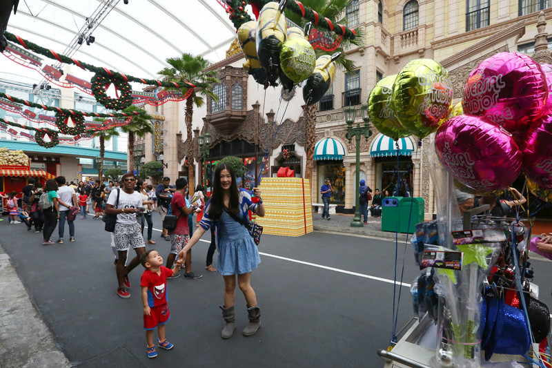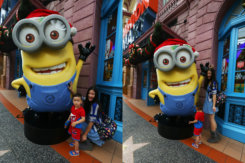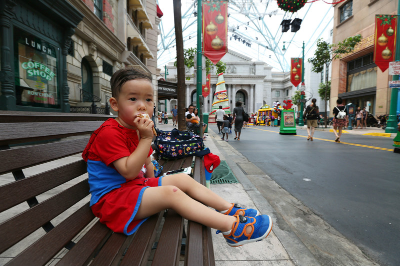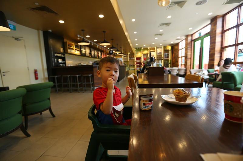 慵懒地爬起床,雨停了,天空是浅浅的蓝色,云朵也淡淡的,翻看了一眼天气预报,零散雷雨,好洋气的名词,不知如何零散,趁着天气好,赶忙开始我们这一天的行程。酒店有一道门连着福廊,福廊对面就是糖果屋,往左手边走是海洋馆(/poi/7382073.html),我们先往右,去星巴克买杯咖啡吃个早餐,然后去环球影城(/poi/10982.html)。带着娃娃旅行,早餐是每天第一重要的行程,照顾好小朋友的一日三餐,棒棒的身体是旅行的必须!每年冬天在国内最期待的就是圣诞咖啡,寒冷的冬日一杯温热的圣诞咖啡想想都觉得幸福,第一次感受到新加坡火热的圣诞氛围,冰曲奇圣诞拿铁!三十度的圣诞节确实让人惊艳,一边大汗淋漓地欢笑,一边酣畅淋漓地畅饮,从咖啡馆到环球影城(/poi/10982.html)才几步路,已经热得我满头汗,小小兽的头发更是湿透了,软软地贴在头皮上,但是丝毫不会打扰到他的好兴致。