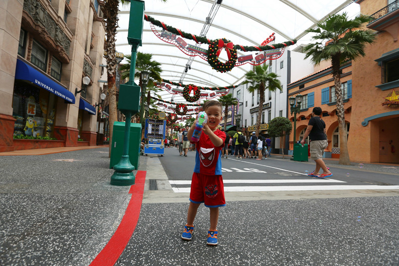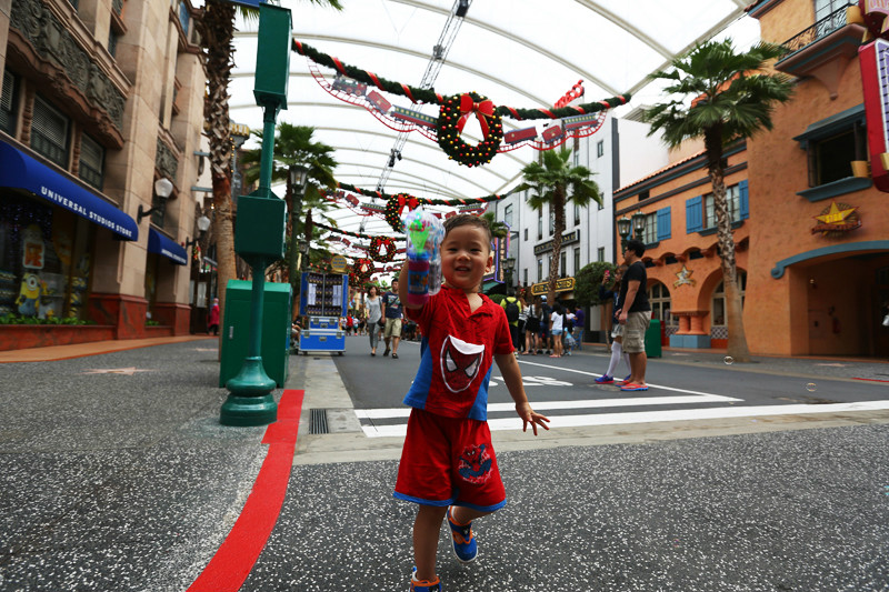 环球影城(/poi/10982.html),我太爱这个地方了,到处都是浓浓的圣诞氛围,和小宝拉着手一路欢快地跑进大门,童话房子,圣诞花环,卡通气球,电影人物,尤其是各种原比例的汽车模型,变形金刚,这些是不论多大男孩儿都疯狂热爱的吧!急速过山车更让小小兽惊呼不已,可惜那么小的宝宝还不能亲自体验,身高不够,年纪更不够,不过单单是看着都让他觉得兴奋,举着冰激凌,拿着泡泡枪,乐坏了小家伙儿,从那阵阵欢声中我就知道他喜爱这个地方,午觉都不睡了,一直开心的奔跑着。