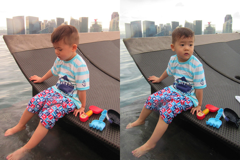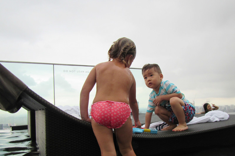 天还是有些阴,但渐渐在放晴,云朵层层叠叠地堆积在一起,为屋顶的景致增添更多层次,醉翁之意不在酒,无边泳池,整个午头发都没湿,躺在藤床上拍照,上网,看风景,陪小朋友玩耍,时间不知不觉就过去了,赶中午前回房间收拾行李、退房,我们又要换酒店了,金沙之旅愉快完结,小朋友有点意犹未尽,在这样一个四季皆夏天的国度,玩水是再方便不过的事儿了,明天继续!