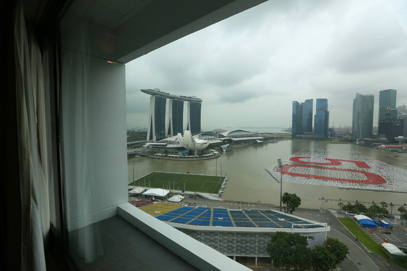 滨海湾金沙酒店(/poi/22114.html)由三座塔楼组成,并由屋顶的空中花园连为一体,酒店虽大但是管理有序,工作人员一边引领我进入酒店,一边已经将我们办理好check in,我和小小兽的房间在第三座塔楼,还等什么?放下行李换上泳装,我们游泳去!