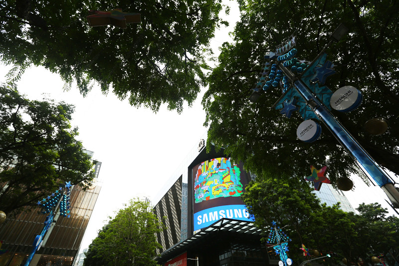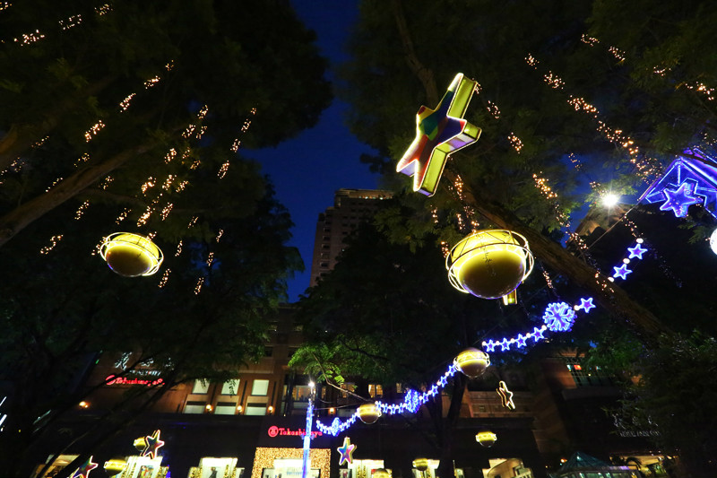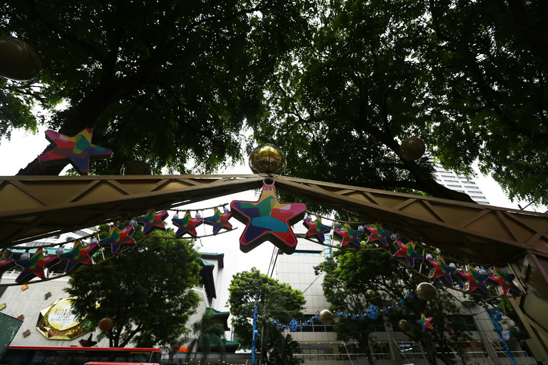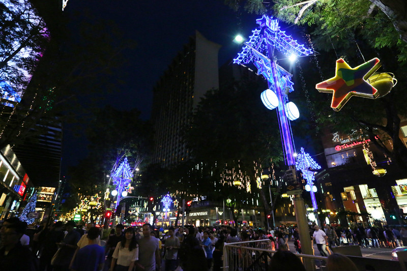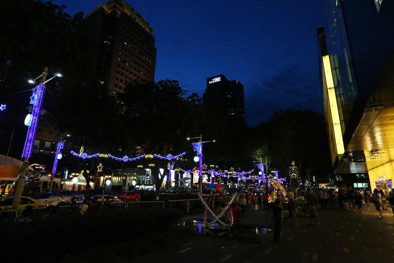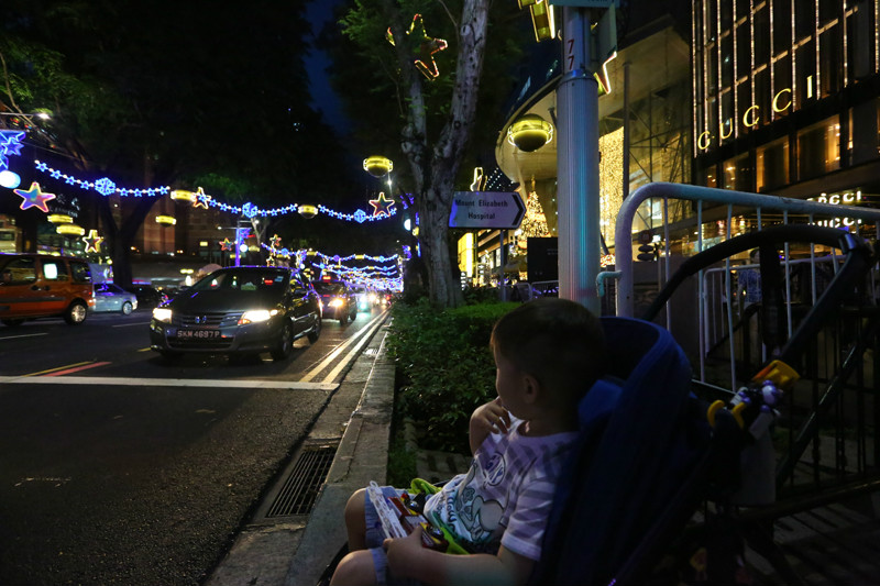看向窗外,街上的灯饰已经亮起,树枝上硕大的星星闪闪发光,各个商场前的圣诞树也都亮起来,火树银花,灯火辉煌,再怎样绚烂的形容都不为过,整条街都被点亮。从百丽宫(/poi/21938.html)出来一直沿着乌节路(/poi/11057.html)没有目的地游逛,街上的人络绎不绝,路边有很多学生模样的人在做公益,售卖一些圣诞礼品和小装饰,围了很多人,心心念的威化饼干夹冰激凌都没能吃到,排队的人太多,决定离开乌节路(/poi/11057.html),带小小兽去坐摩天轮(/poi/10857.html)!
