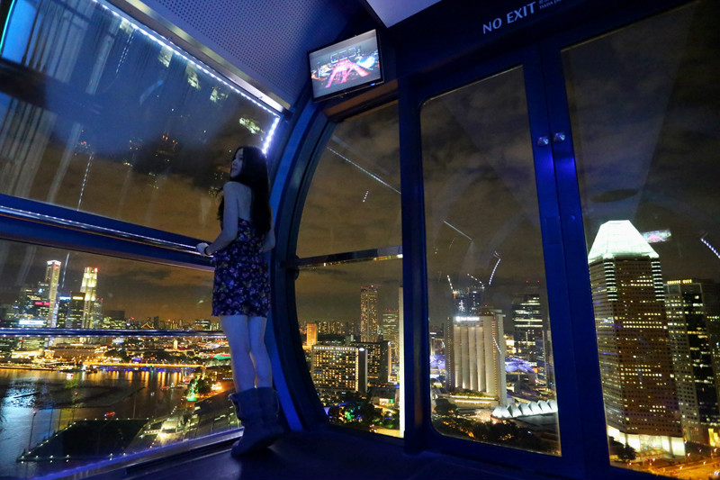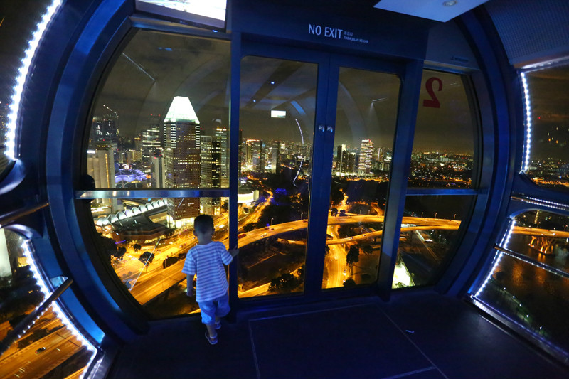 我始终认为每座城市都具双重性格,白昼的热情与张扬,喧嚣过后,夜晚则映出她的温柔,新加坡固然也有这温柔的一面,于四年前我已经感受过一次,如今带着小小兽再一次重温,小家伙儿也很开心,一会儿兴奋得指着高速路上飞奔的汽车,一会儿手舞足蹈地拍打着玻璃,他一定也爱这迷人的夜色,只是无从表达,拥有摩天轮(/poi/10857.html)的幸福国度,将我们温柔的揽入怀抱,让人怎能不爱。
