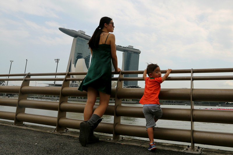 前几日的阴凉一去不复返,新加坡恢复炎热盛夏,从离开酒店,在新加坡路边摊(/poi/5428175.html)吃午餐,之后又一路沿着新加坡河岸边推着小小兽到鱼尾狮公园(/poi/22851.html),汗已从额头上滴下来,我们不赶时间,边走边玩,遇到冰激凌小摊就买一只随意的坐在河边台阶上吃起来,并有冰椰子水可以免费喝,小小兽不爱那味道,倒是喜欢椰子冰激凌配上一种甜甜的红果酱,总觉得小朋友是不怕热,更不知疲累的,满头大汗的小小兽依旧在开心地奔跑着,顽皮着,这世界对他来说都是一个游乐场,他永远都如此开心,对任何事物都保持心情,一天有问不完的问题,“妈妈,这是什么啊?”“妈妈,那个是什么?”别再问一个人带孩子旅行有什么意思?我的回答是,你没有一个时刻是无聊的!当然,你也几乎没有一个时刻是轻松的,但是我却越来越享受这样的旅行,大手牵小手一起在路上,彼此互相陪伴。