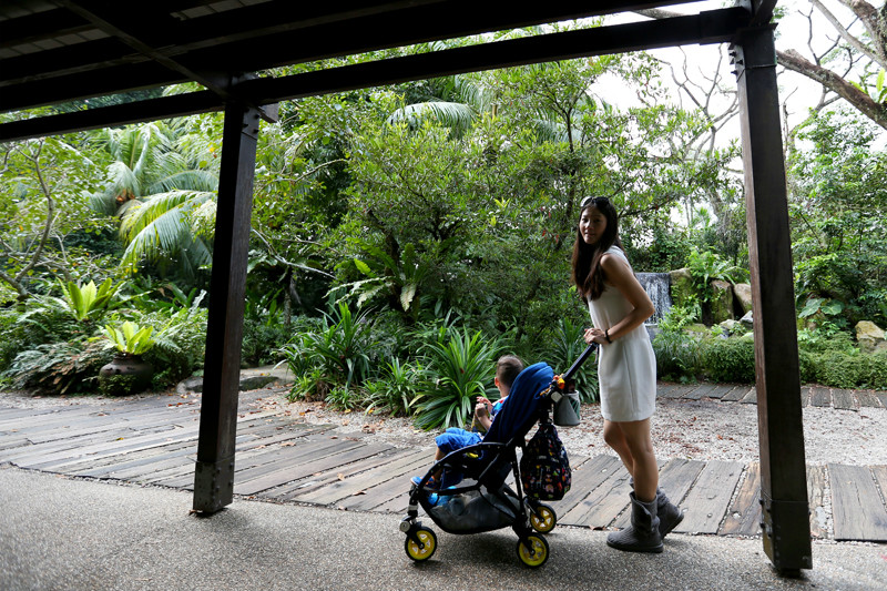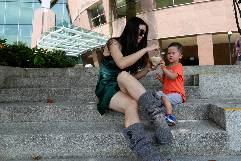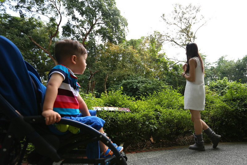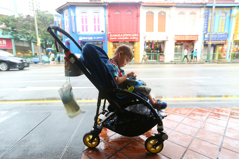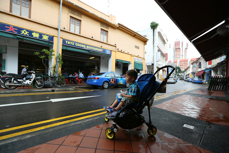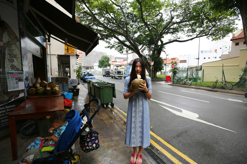 淋着小雨的街道湿漉漉的,小小兽不想下来自己溜达,就坐在小车上被我推着逛着,许是他还没有长到可以陪着妈妈一起欣赏街景建筑的年纪,这些还不足以唤起他的新奇,好吧,口口声声说这一次是陪伴宝贝的旅行,但是妈妈偶尔有些私心,就让我在新加坡停留的最后几个小时任性地跟随自己的脚步,走走停停,看新奇的建筑,抱一只大椰子在路边发呆,小小兽早已习惯老妈的旅行方式,更习惯我的自拍,那淡定自若的小神情,十足小小的旅行家,世界在他眼中还没有定义,这样无拘无束的时候对于小小兽我从来也没有过多的要求,老妈带你看世界,而他,只要快乐就足够!