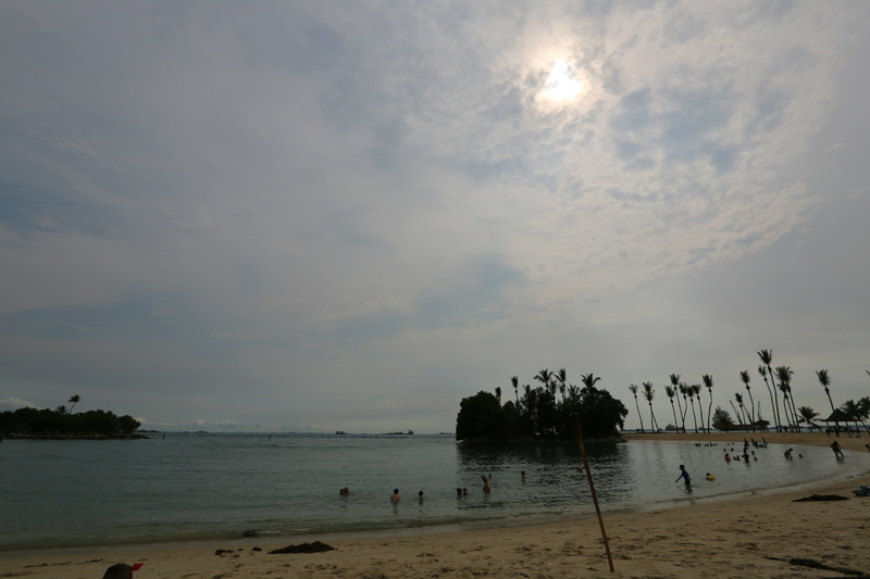 我想人生最幸福的时刻莫过于记忆和梦想再次碰撞的时候,烈日下,熟悉的场景映入眼前,还是那片沙滩,但是已经失去曾经的喧嚣和繁华,当时喝饮料的酒吧早已不再;还是那块冲浪板,红色的,但是岁月为它附上斑驳;还是那个我,但是已经不再是自己一个人,拖着我的小尾巴,我今生最最疼惜的小幸福,又想起那句已经说烂的话,时间其实是静止的,流逝的是我们自己……从回忆里跳出来,旅行我要快乐的。如今的圣淘沙,Tanjong Beach沙滩比较出名,下午我们就只在这里了!