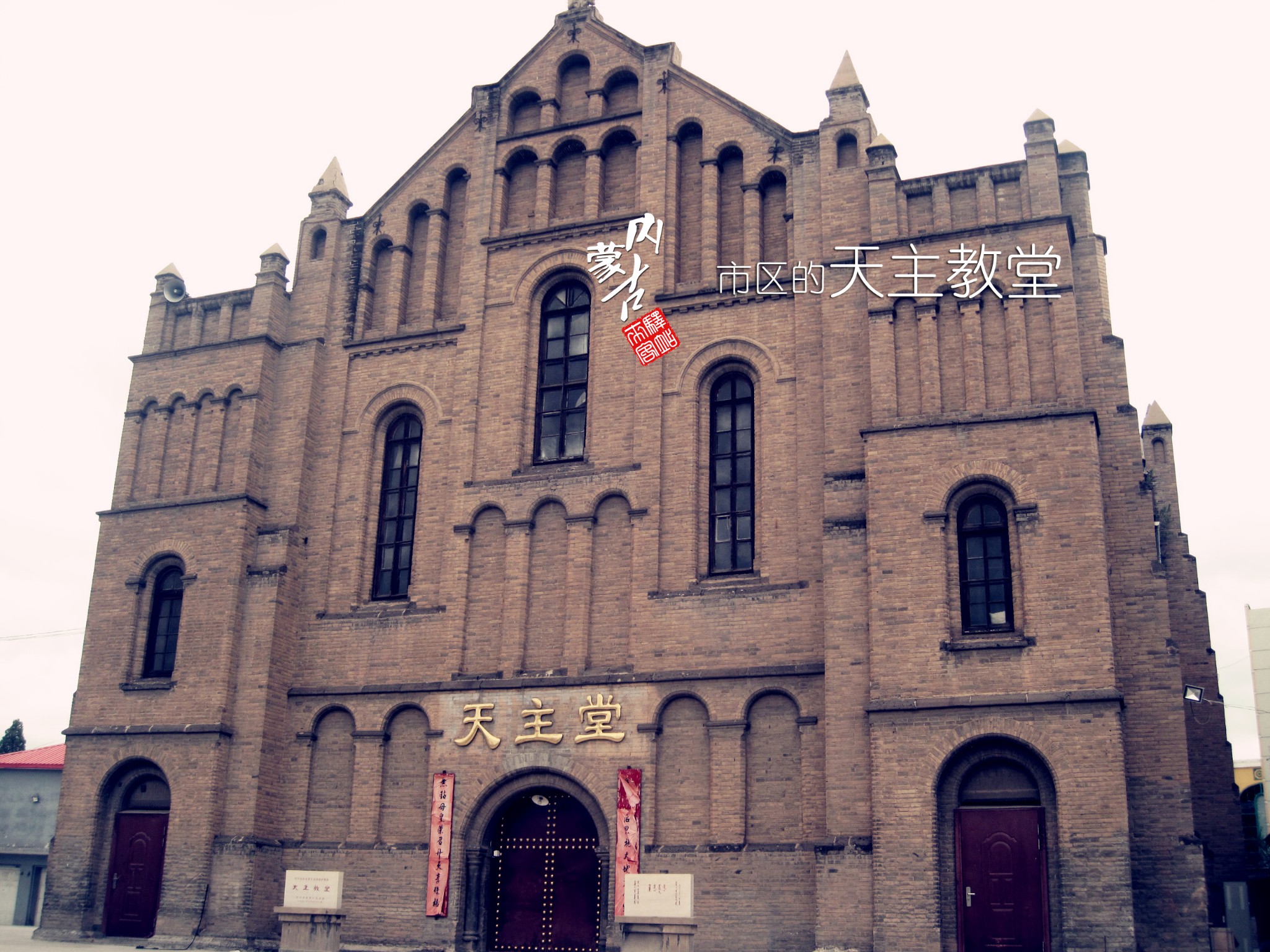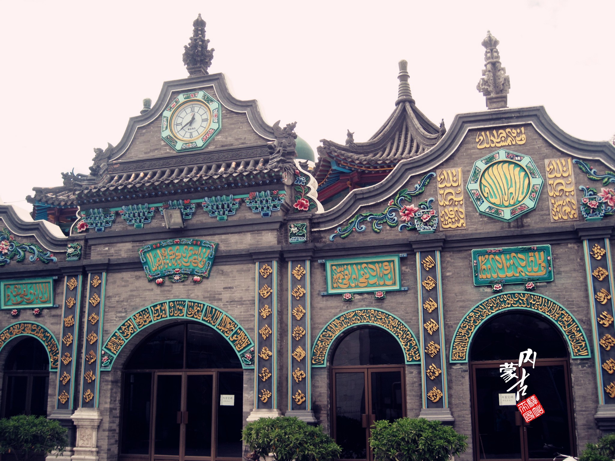 我简单找到附近一家快餐店换了身衣服,就开始悠闲地逛这座老城了。进入内蒙境内后,所有的标志都写有蒙语,连快餐店也不例外。率先吸引我的是伊斯兰风情街上的清真大寺。