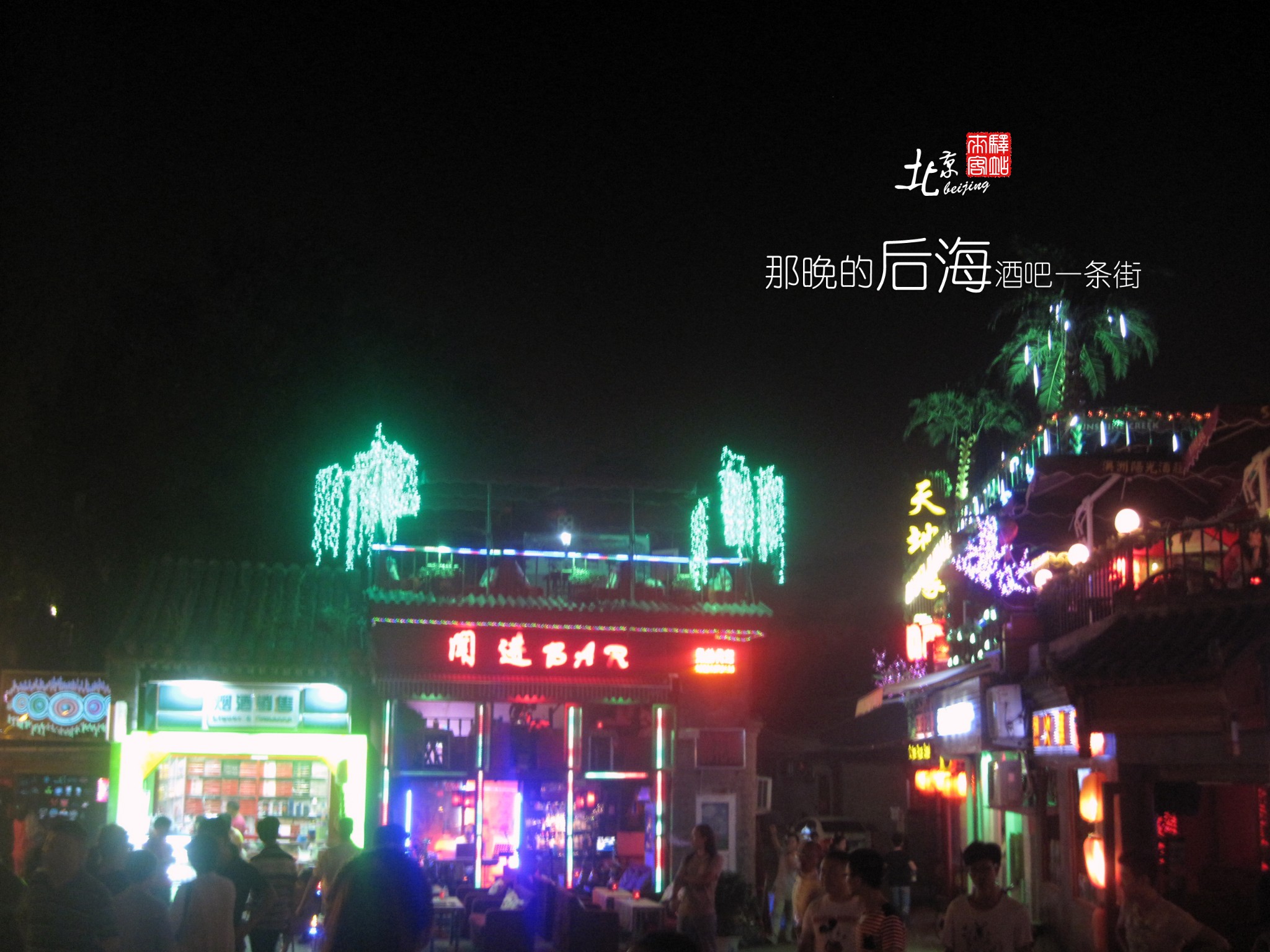 夜的南锣鼓巷和白天完全是两种感觉了。老外变得特别多,各个小店也亮起了彩灯,把800米的小巷子装点得十分小资。这次我走得十分慢,等从南锣鼓巷再次穿到烟袋斜街的时候,烟袋斜街的商铺大多已经关门了,不远处的后海却似乎更加热闹了,传来一阵阵喧嚣。一个转弯,后海的灯红酒绿立刻展现眼前,人潮涌动,好不热闹。