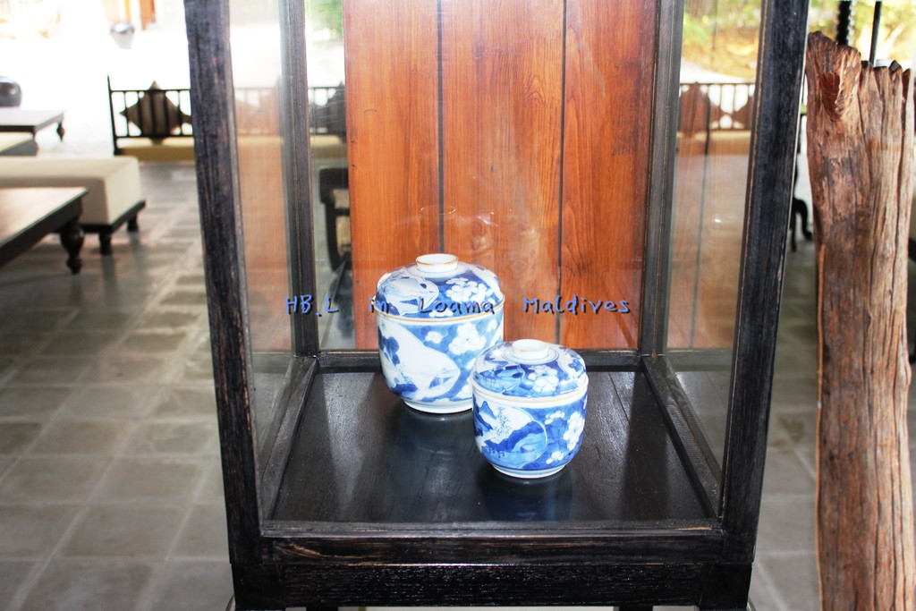 这件陶瓷是在兴建这座度假村的时候,工作人员从这座岛屿上面挖出来的,听管家说有400多年的历史了,他们把这些瓷器啊,贝壳特意送去英国鉴定的,管家说还有一些文物因为不知道年限,所以没有展示出来。