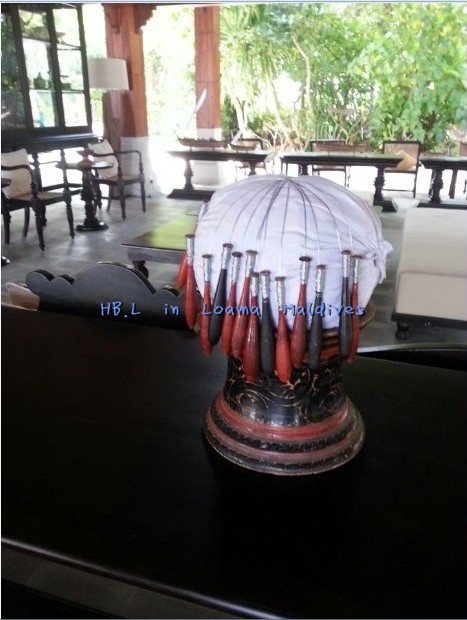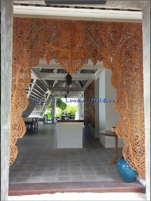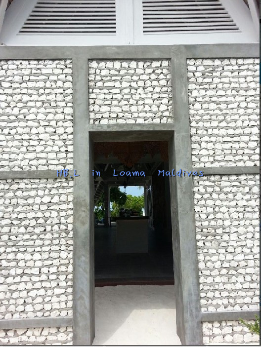 这里是门的特写,这个岛屿上面很多处地方都保持了这种建筑,这是以前马尔代夫当地人的建筑,中间是珊瑚。他们说20年前的马累(马尔代夫的首都)就都是这种建筑的。觉得他们很以自己的历史为傲的,一直小傲娇的表情哈,小帅管家。